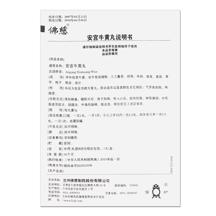佛慈 安宫牛黄丸 3g*2丸 清热解毒,镇惊开窍。用于热病,邪入心包,高热惊厥,神昏谚语。