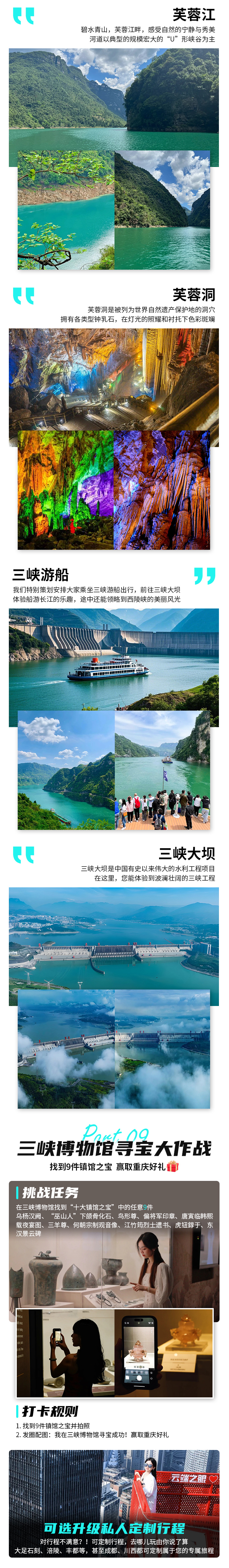 芙蓉江游船+索道,三峡大坝参观的导服和景交通;