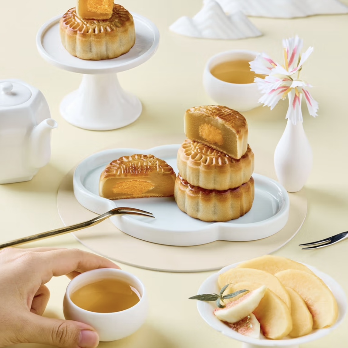 华美 低糖蛋黄纯白莲蓉月饼/低糖豆沙陈皮月饼 广式月饼 150g(3枚)