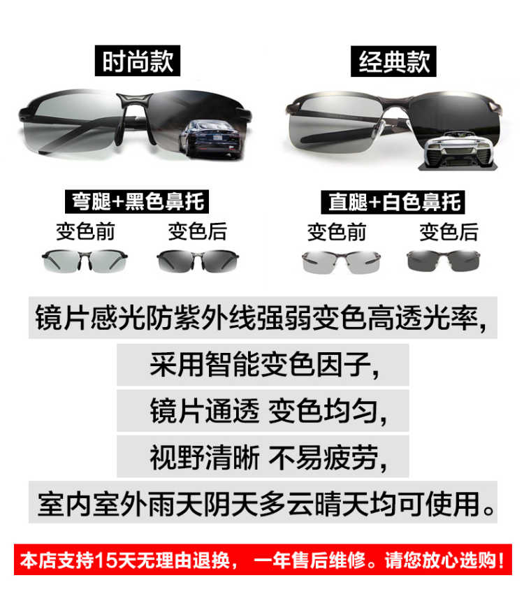 【新科研技术研发】【Bertha智能变色护眼眼镜】日夜两用防紫外线偏光变色眼镜开车钓鱼墨镜
