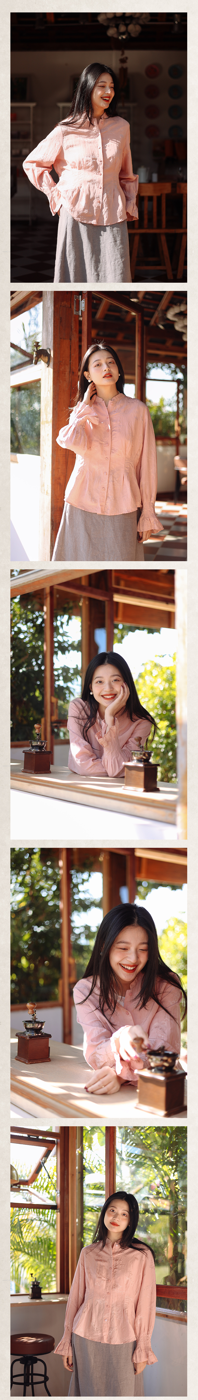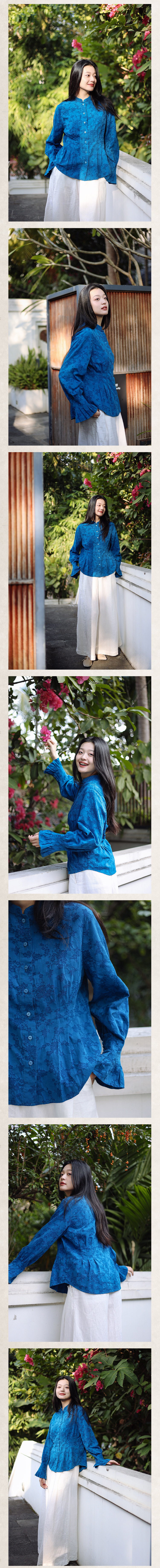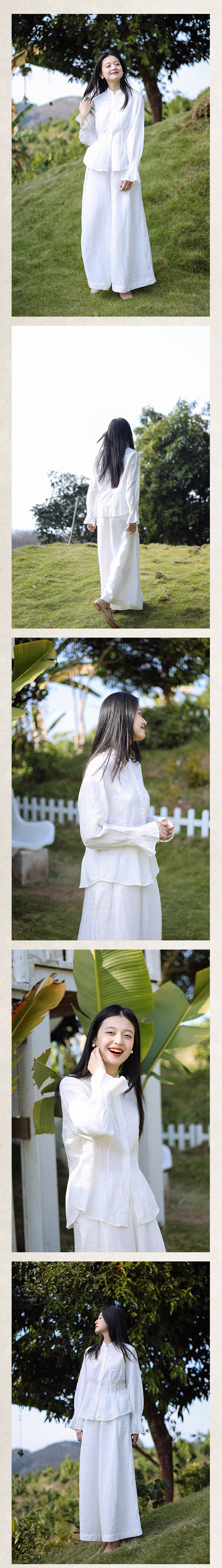 绽放089朵/高端光泽感亚麻棉新中式立领长袖微喇叭袖文艺棉麻衬衫