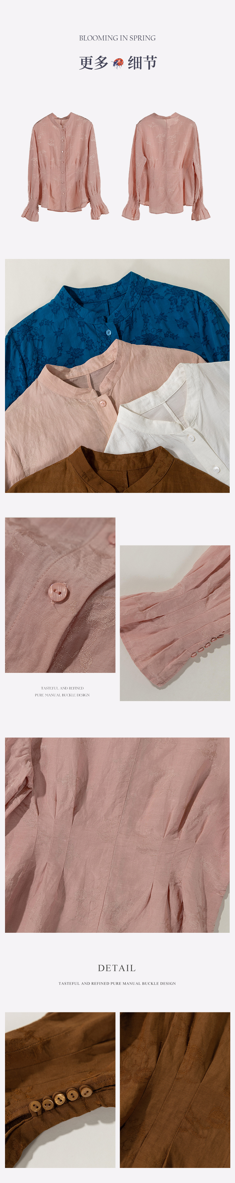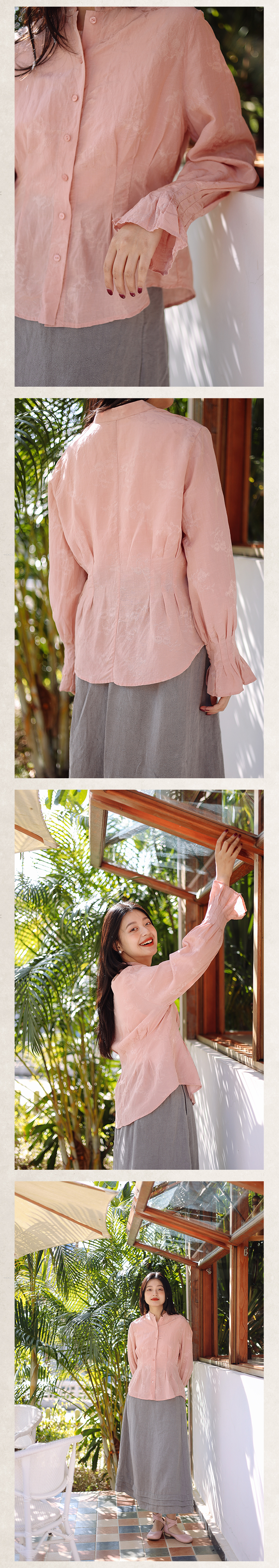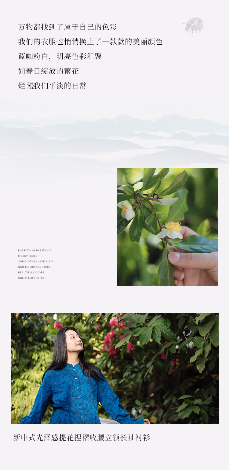 绽放089朵/高端光泽感亚麻棉新中式立领长袖微喇叭袖文艺棉麻衬衫