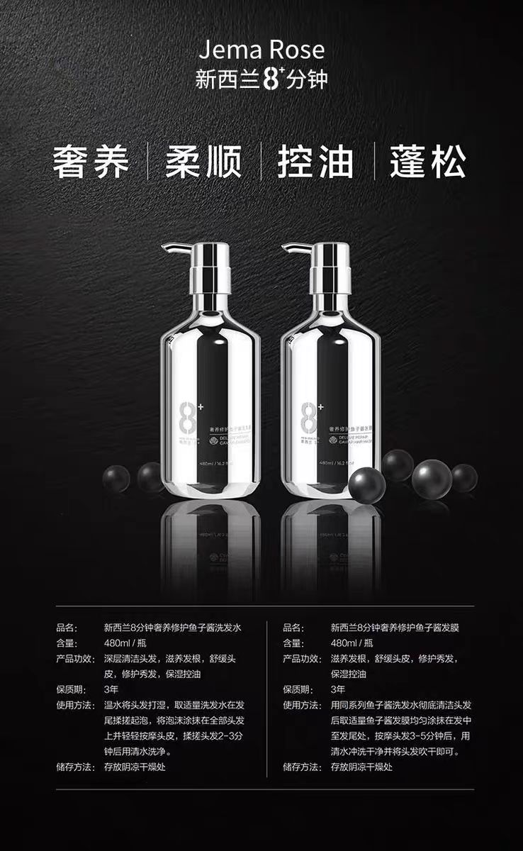 【 奢养柔顺,控油蓬松,99元到手1390ml】正版jema rose新西兰8分钟奢养修护鱼子酱洗发露7件套