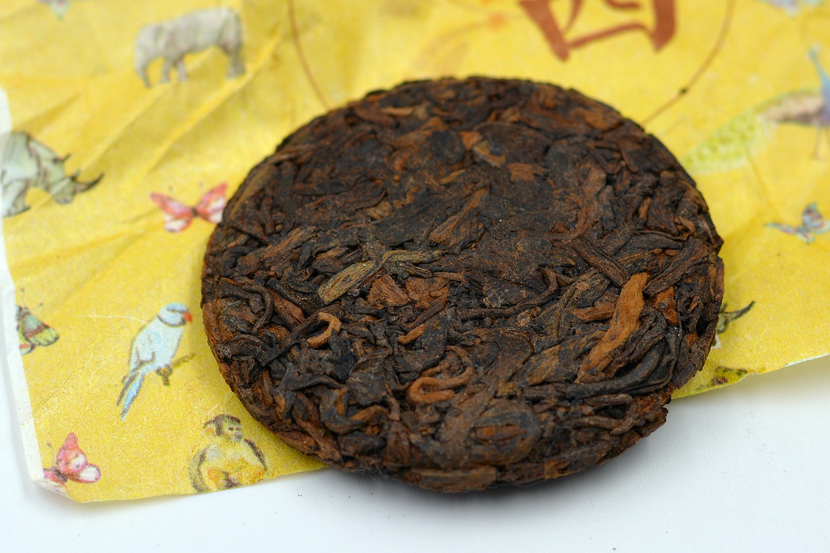 勐海茶区2015年精料细制的普洱熟茶,打开笋壳即闻陈香,金芽褐叶,标准好茶。