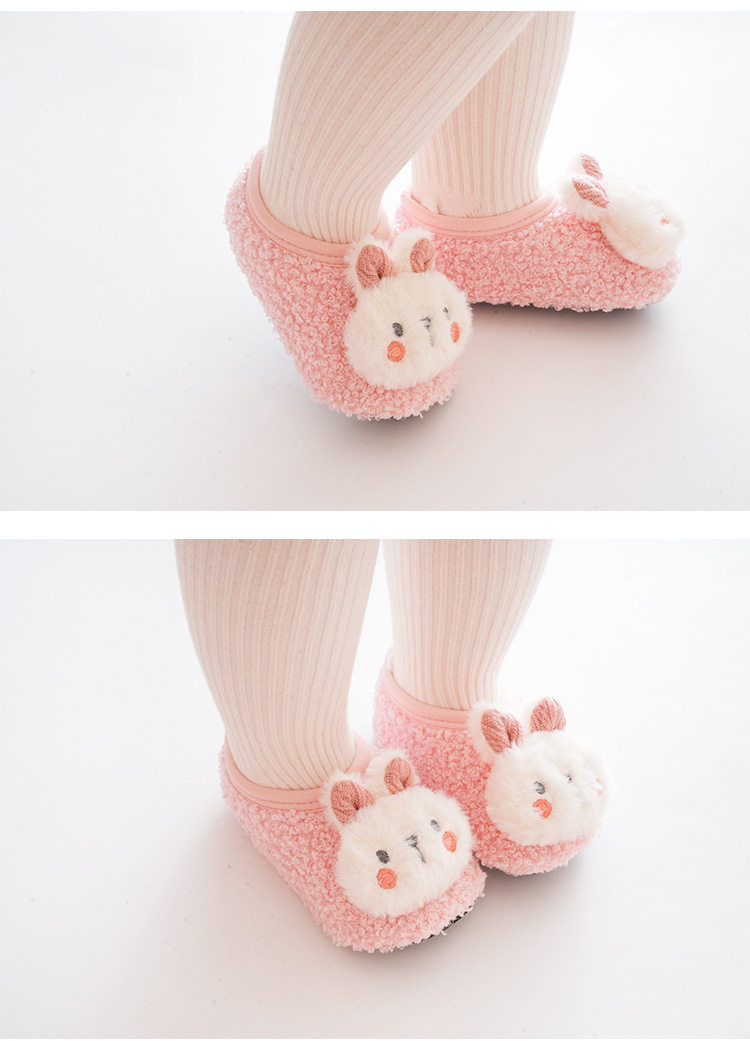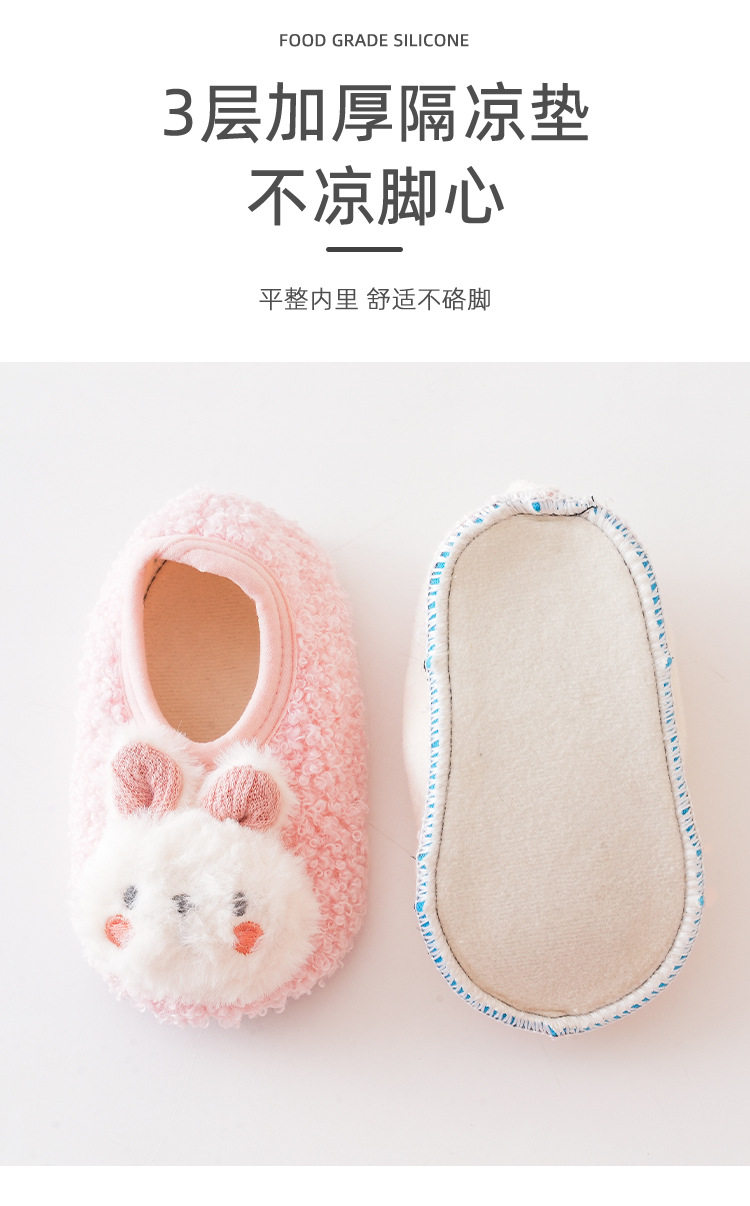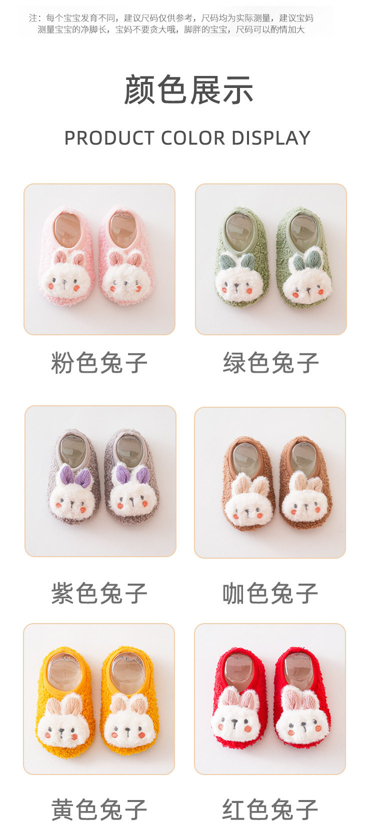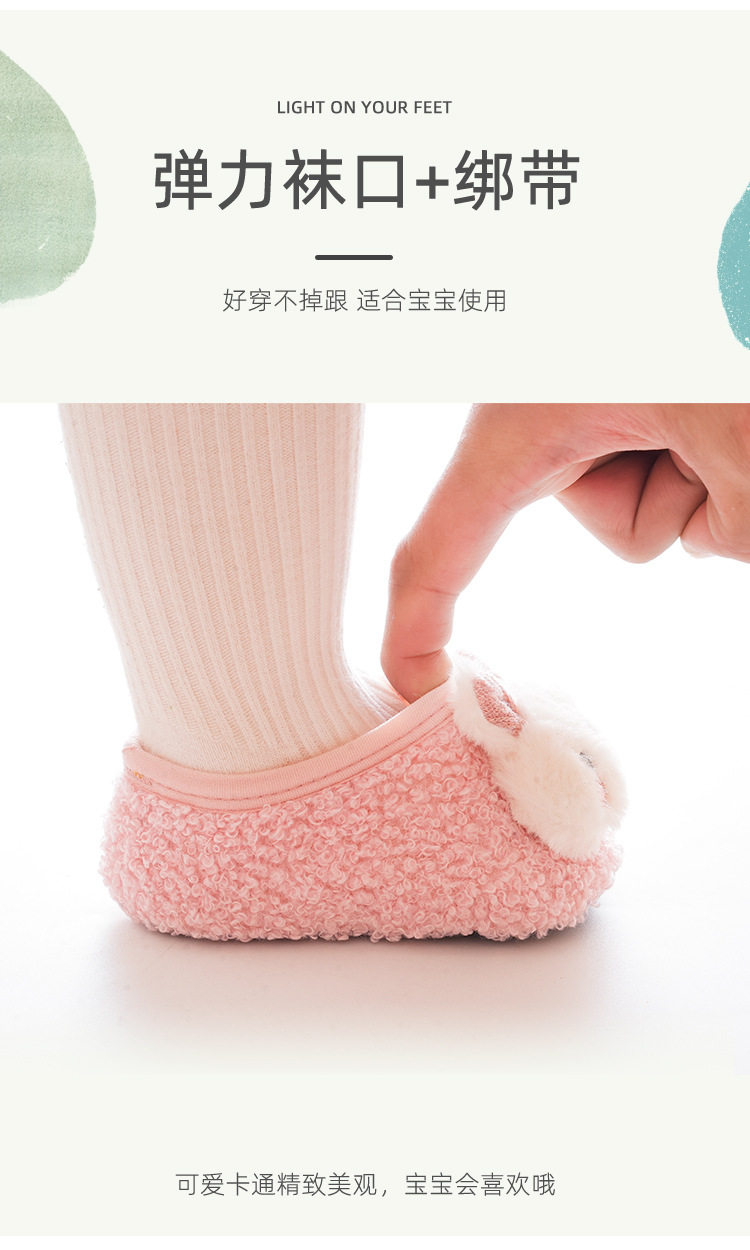 可爱粉色兔子地板袜秋冬保暖加厚男女宝宝软底学步袜亲生儿袜套子