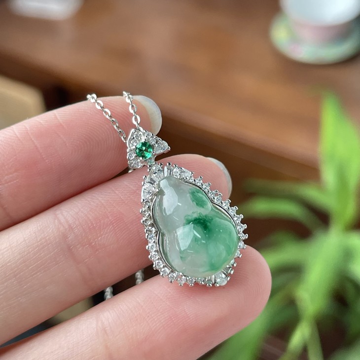 冰透飘绿的葫芦造型,镶嵌闪亮锆石如钻石闪耀,戴起来自带温婉贵气。象征福禄如意,好看又有心意。