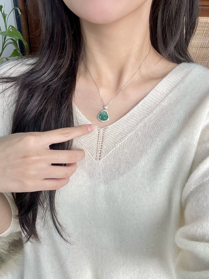盈盈绿意如春日湖水,温润翠玉搭配闪耀锆石,镶嵌于银链上,简约透着精致,古典与时尚交融。