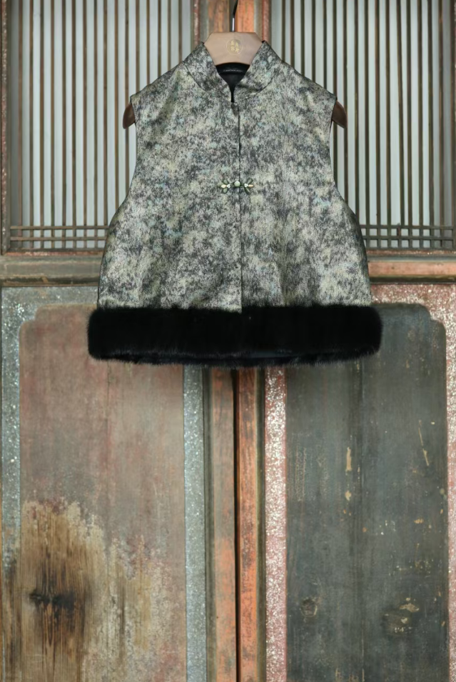 盛唐牡丹盛奢系列 | 真丝西阵织水貂马甲-黑色