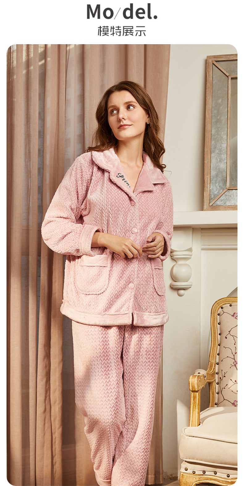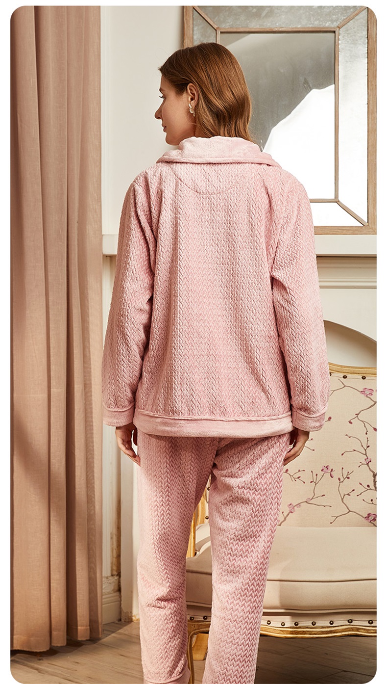 雅黛丽睡衣秋冬女法兰绒加绒加厚保暖家居服套装可外穿高级感