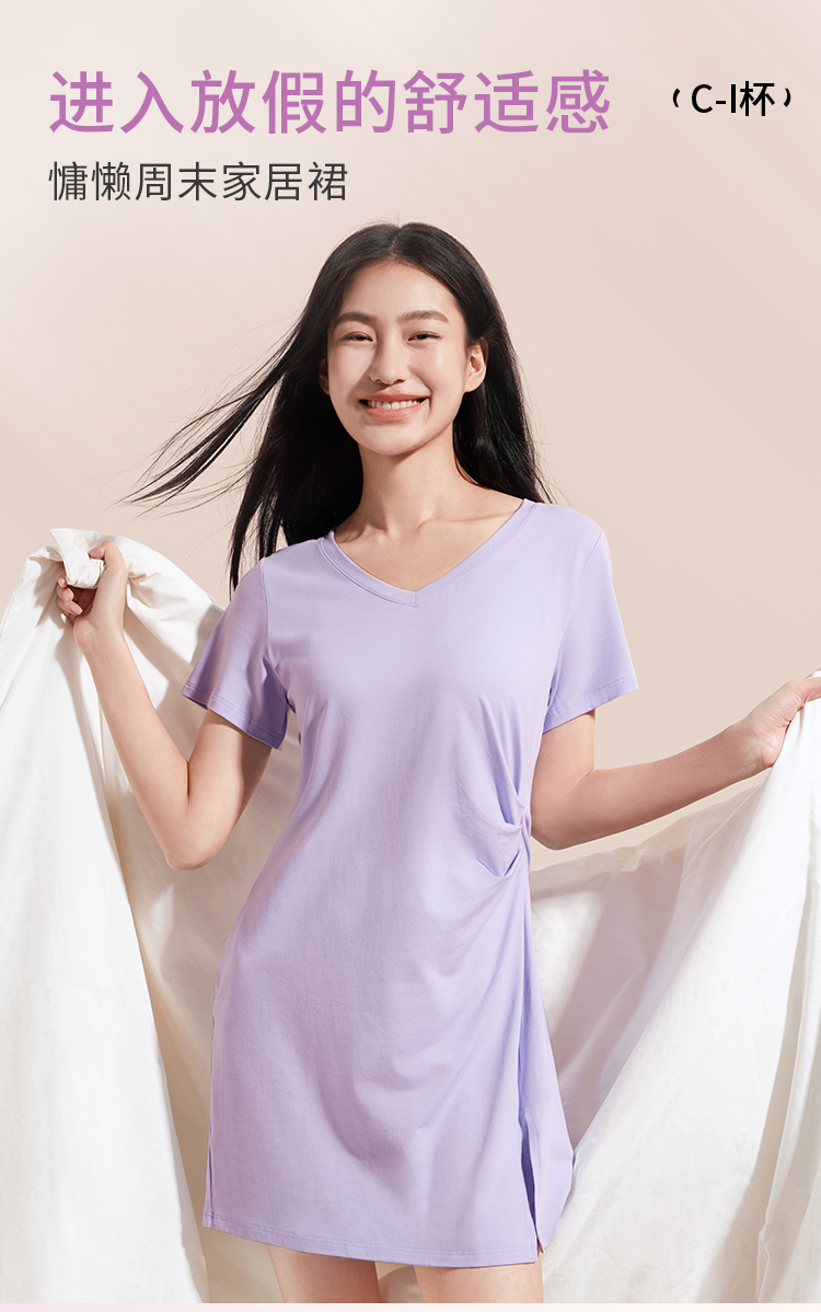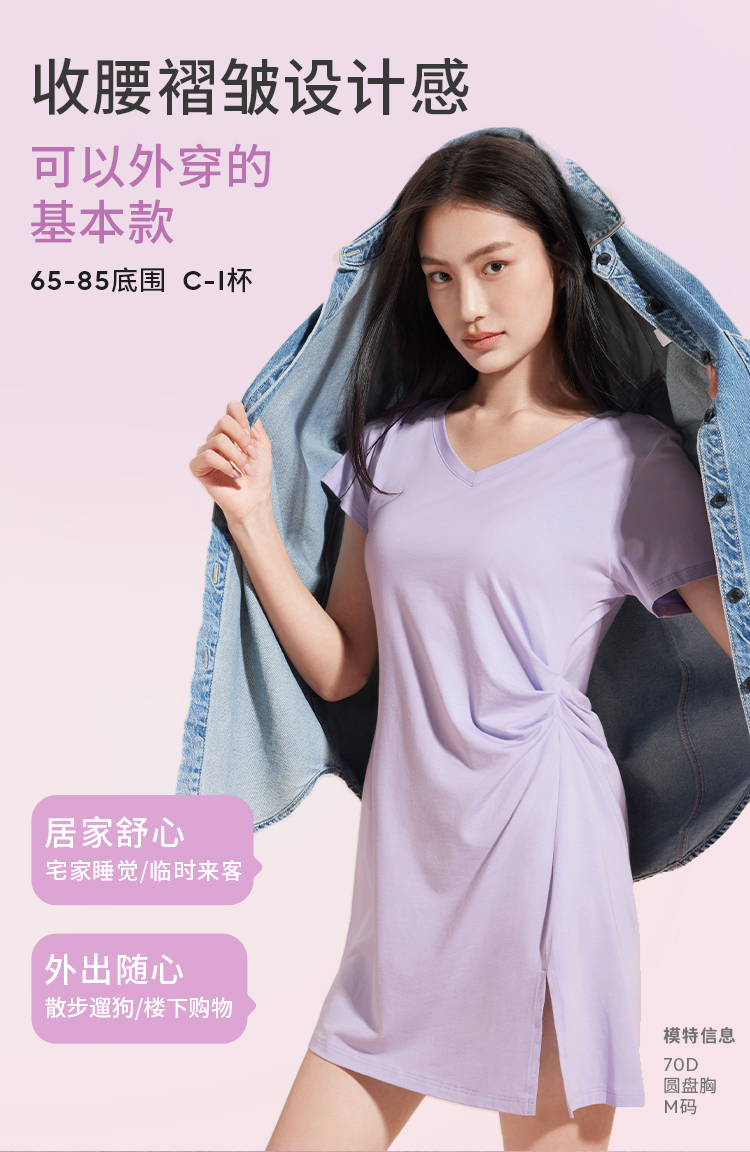 奶糖派大杯文胸慵懒周末睡裙女士春夏季睡衣夏天可外穿休闲家居服