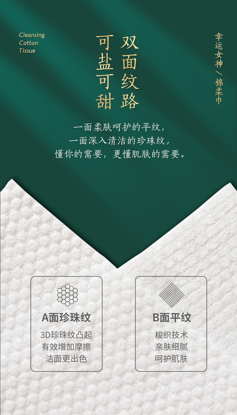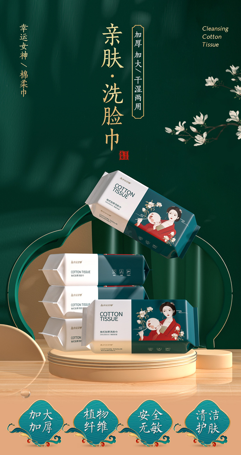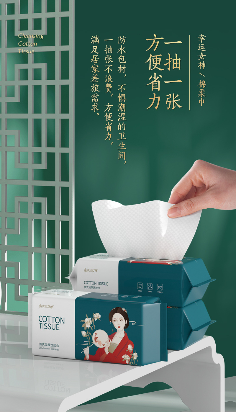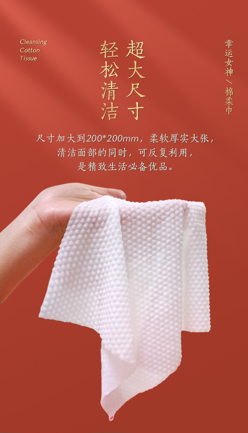 50抽幸运女神国潮风一次性纯棉洗脸巾纯棉洁面巾抽取式棉柔巾干湿两用