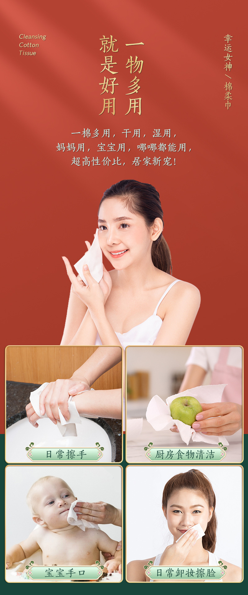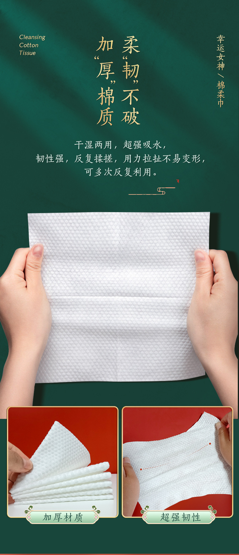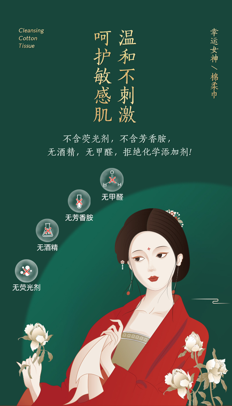 50抽幸运女神国潮风一次性纯棉洗脸巾纯棉洁面巾抽取式棉柔巾干湿两用