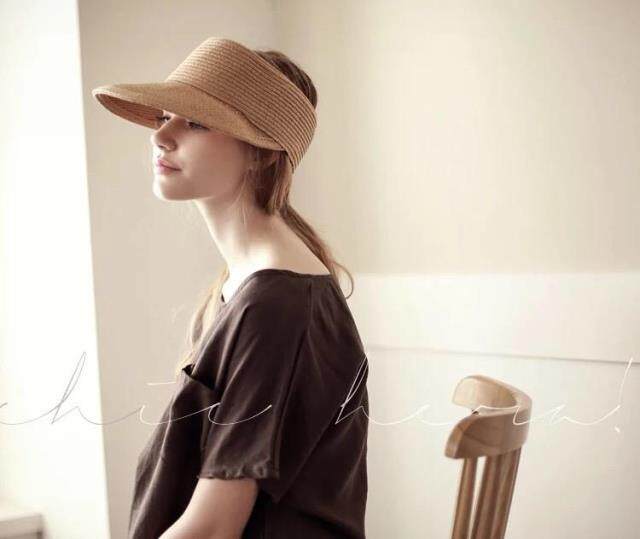 【帽子】欧美大檐草帽空顶帽黑色鸭舌帽遮阳帽太阳帽户外出游度假帽女潮