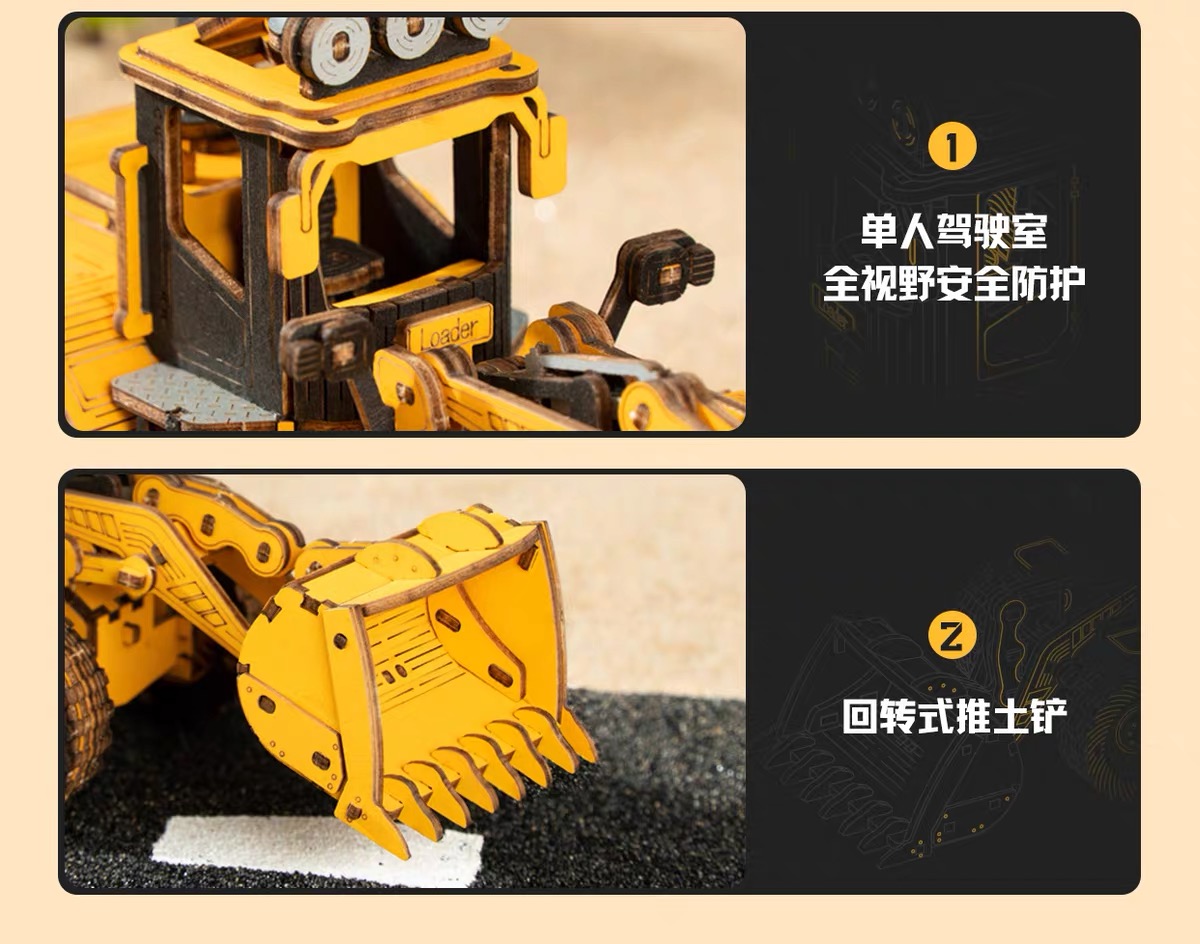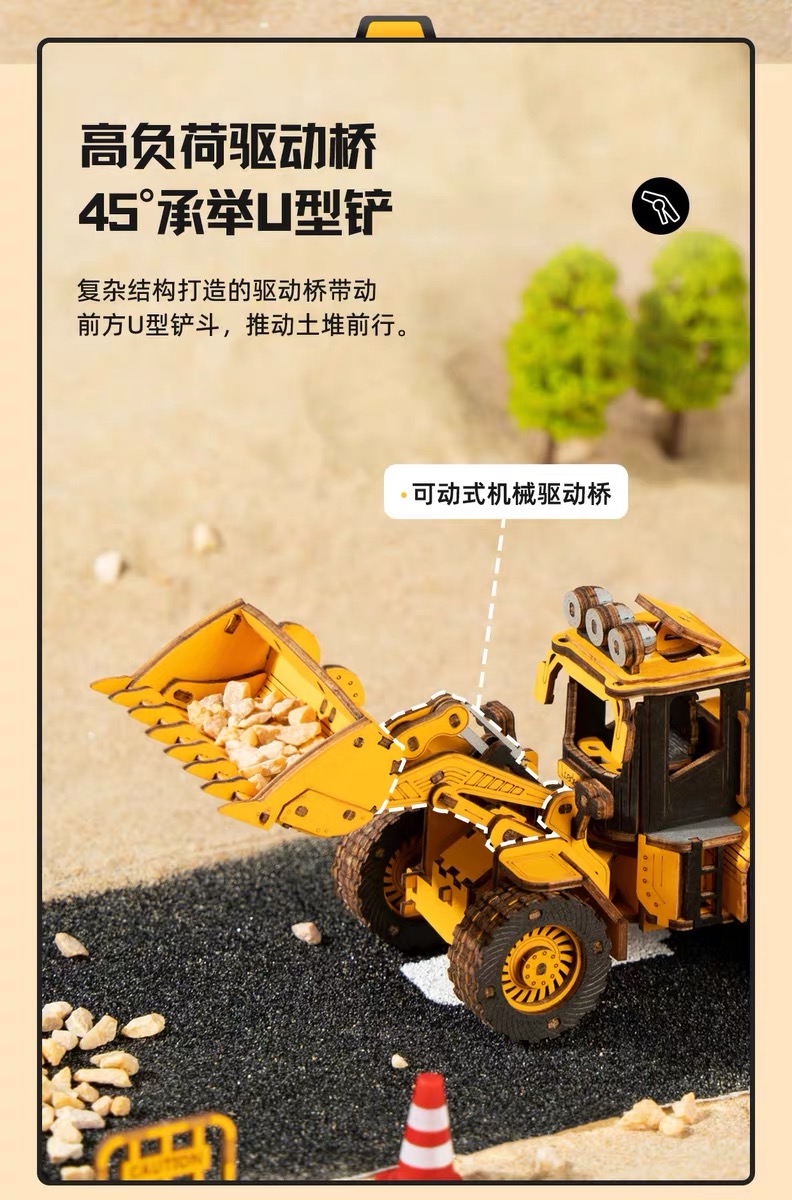 若客(ROKR)城市动力·推土车 木质拼装模型diy手工礼品创意摆件cj