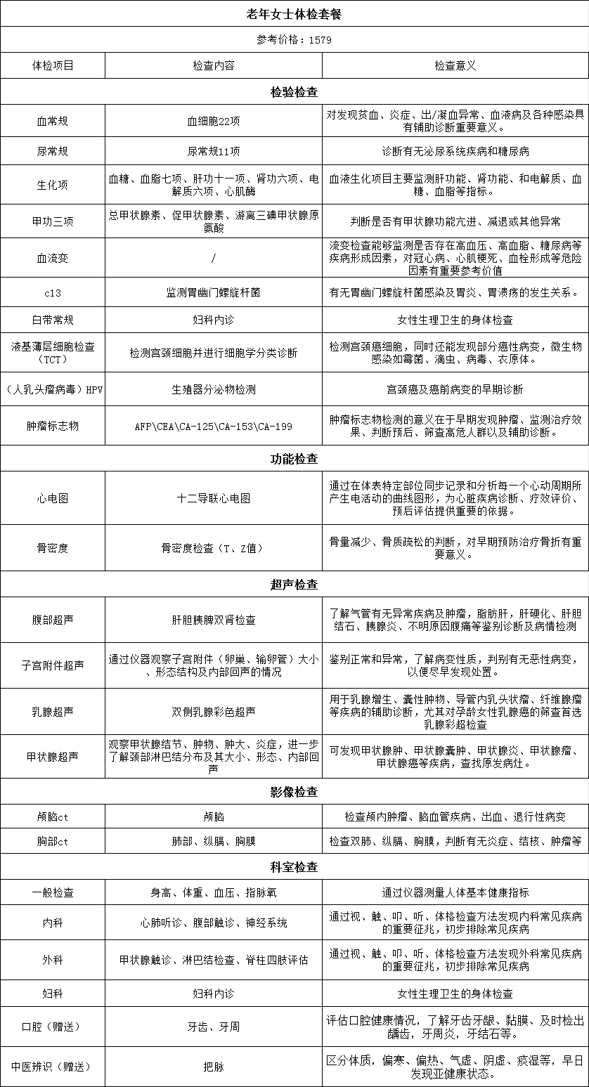 【燕达甜城医院】老年女性体检套餐