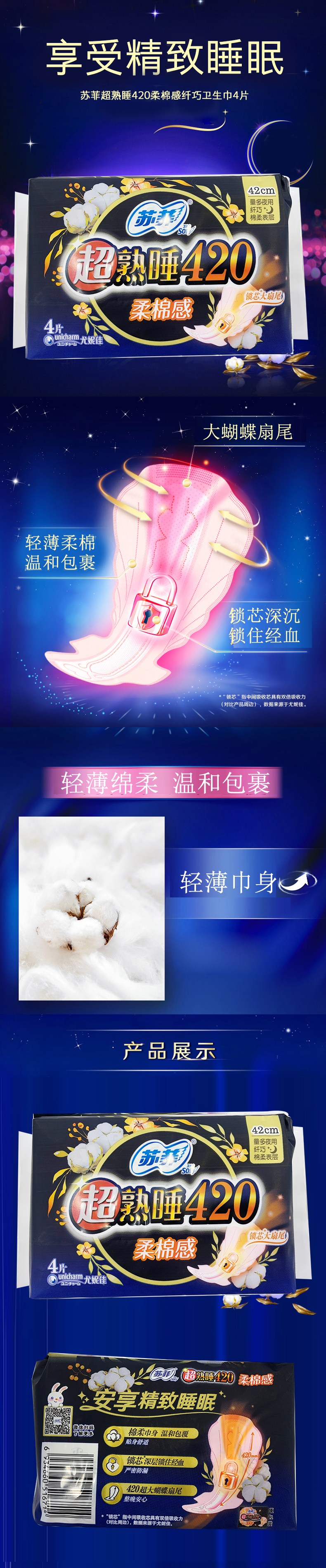 苏菲超熟睡420柔棉感纤巧卫生巾(4片)【20011284】