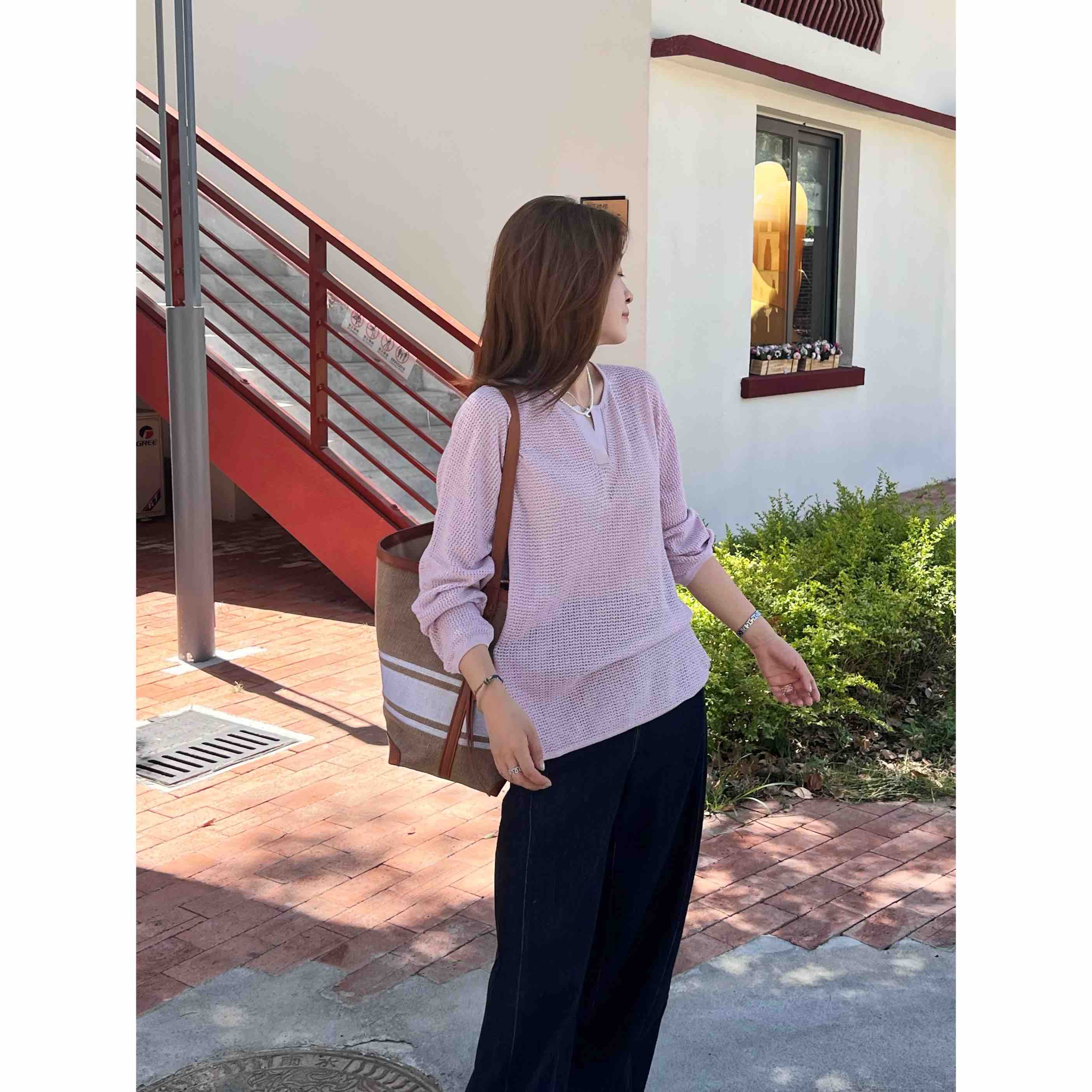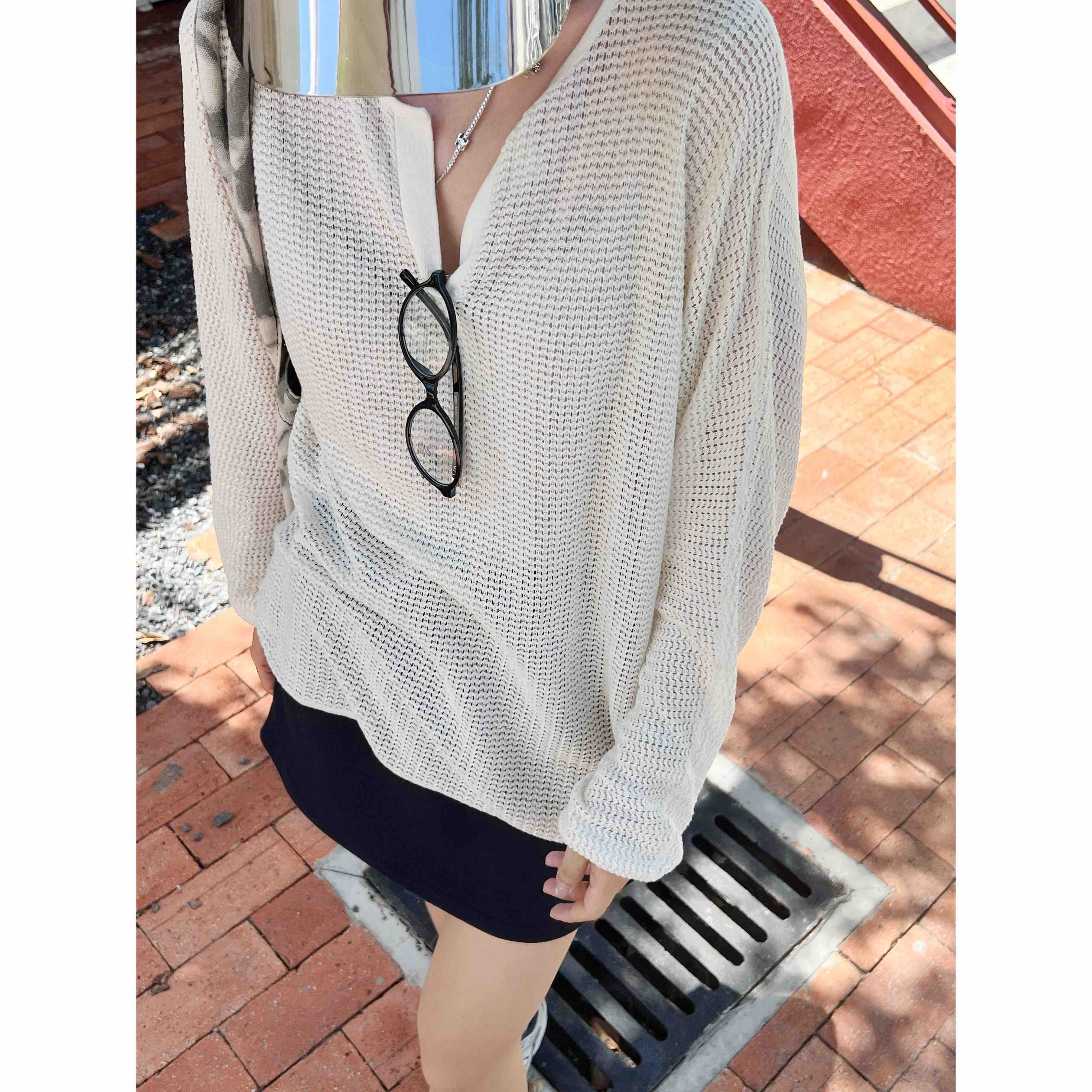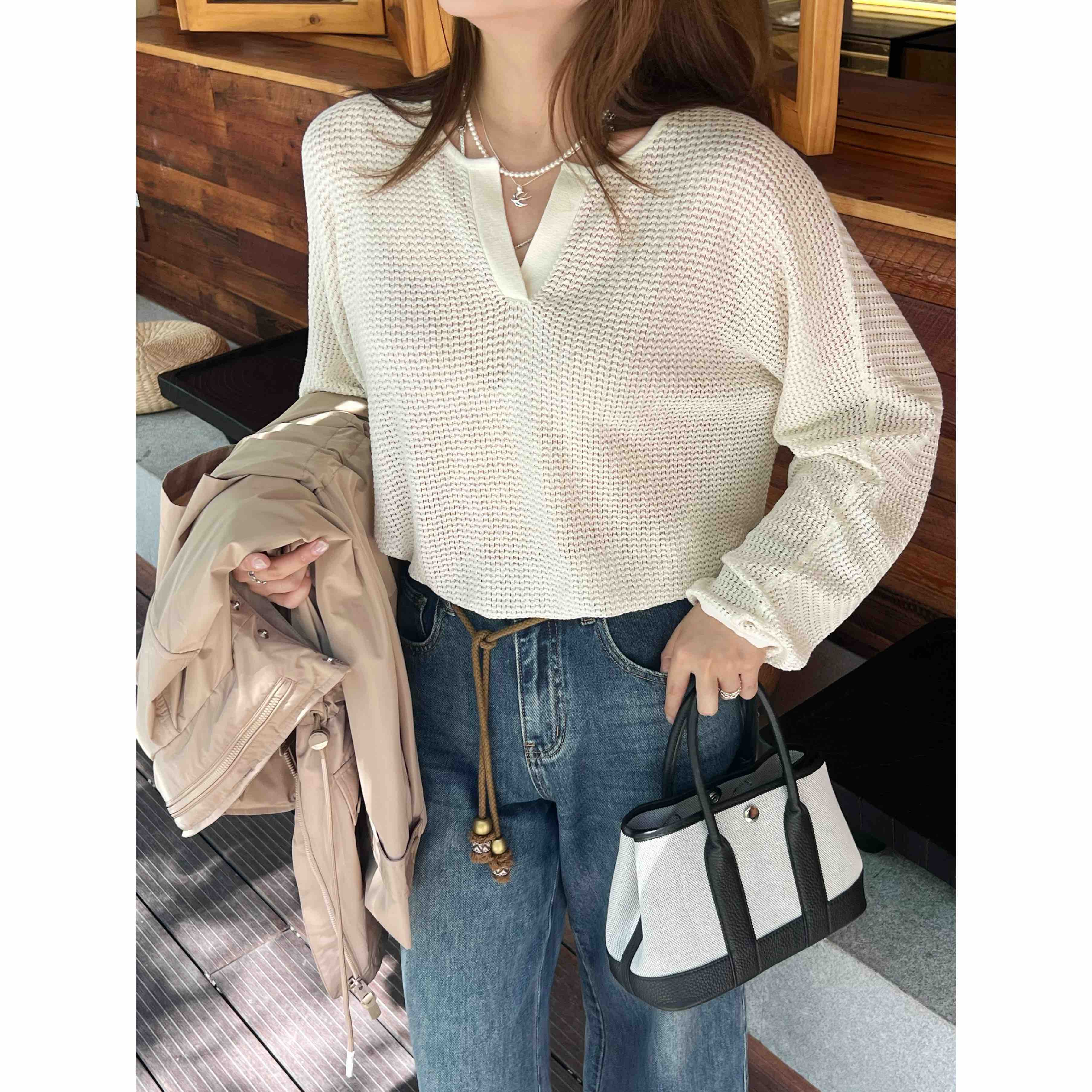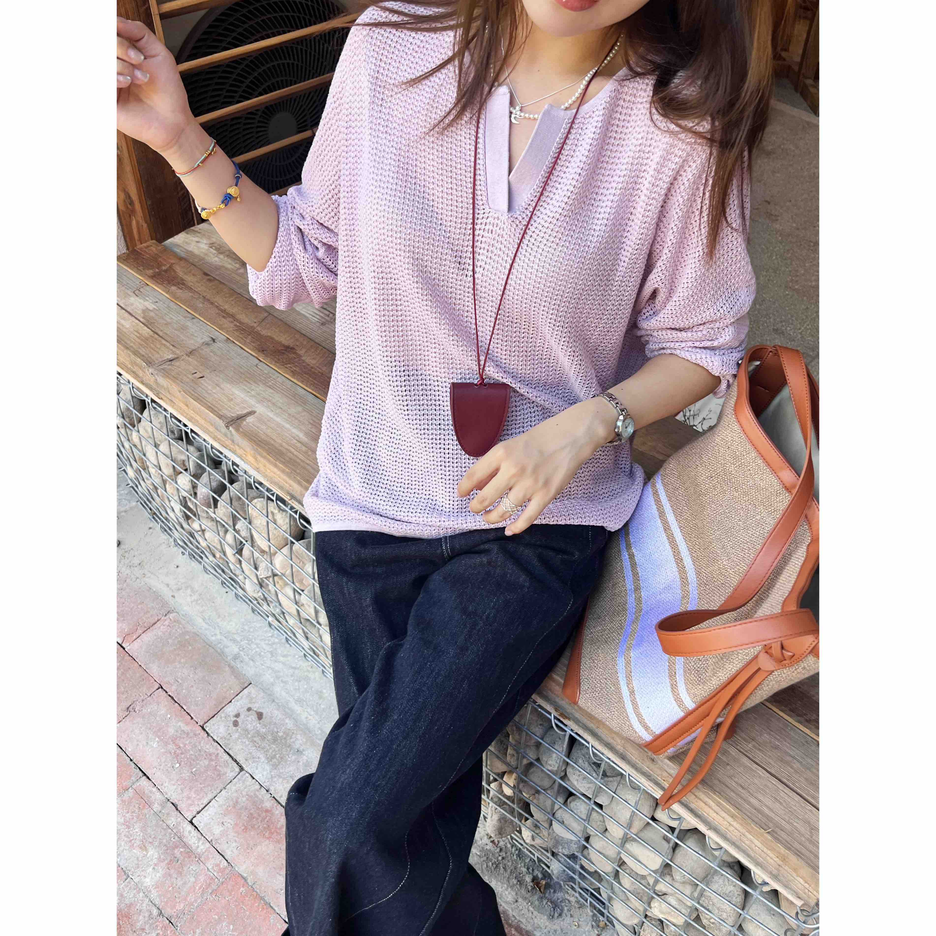 2508511 小禾 真丝亚麻 长袖针织上衣