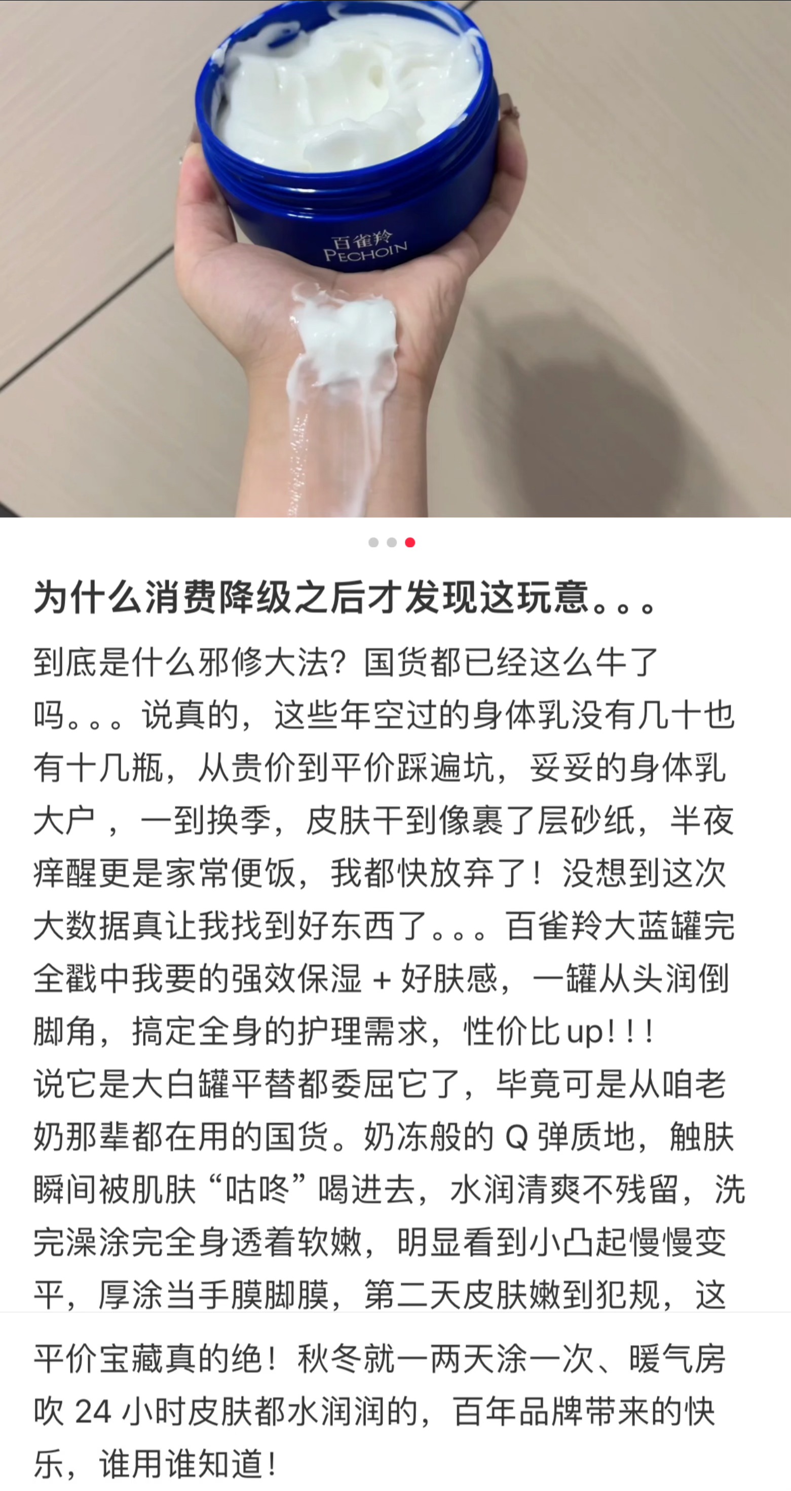 百雀羚大蓝罐,真的是被全网催更哎,绝对的国货精品!超大容量,性价比拉满,不玩花哨营销,好用不贵,成分还足够安全,我觉得,比丝塔芙大白罐更优质!