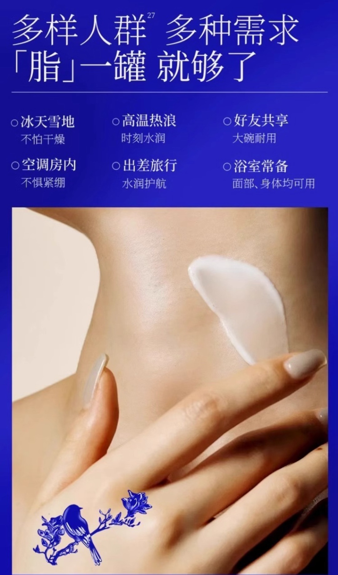 大蓝罐的使用感更是惊艳!轻薄质地轻轻一划,便如同一汪清水般化开,毫无厚重粘腻感,再干燥的皮肤都能被充分喂饱水分。换季时的泛红刺痛,涂上便有被温柔包裹的舒缓感,温和无负担,既能薄涂当面霜日常保湿,也能厚敷作为滋养面膜密集修护,89块就有超大容量,全身涂,做手膜脚膜都不心疼,一罐承包全家从头到脚!