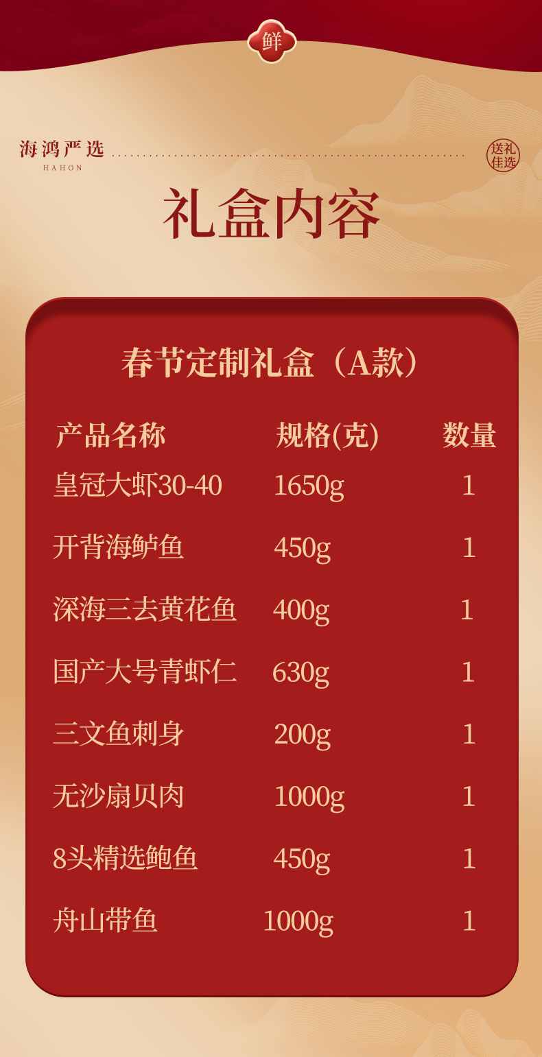 海鸿优选 新年定制礼盒A款8种海鲜食材 送礼佳品