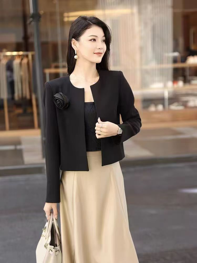 SZ3A63_漆黑色_外套_秋季_圆领立体花朵修身短款气质小香风_高级女装_BERNIEELEN 伯妮斯茵