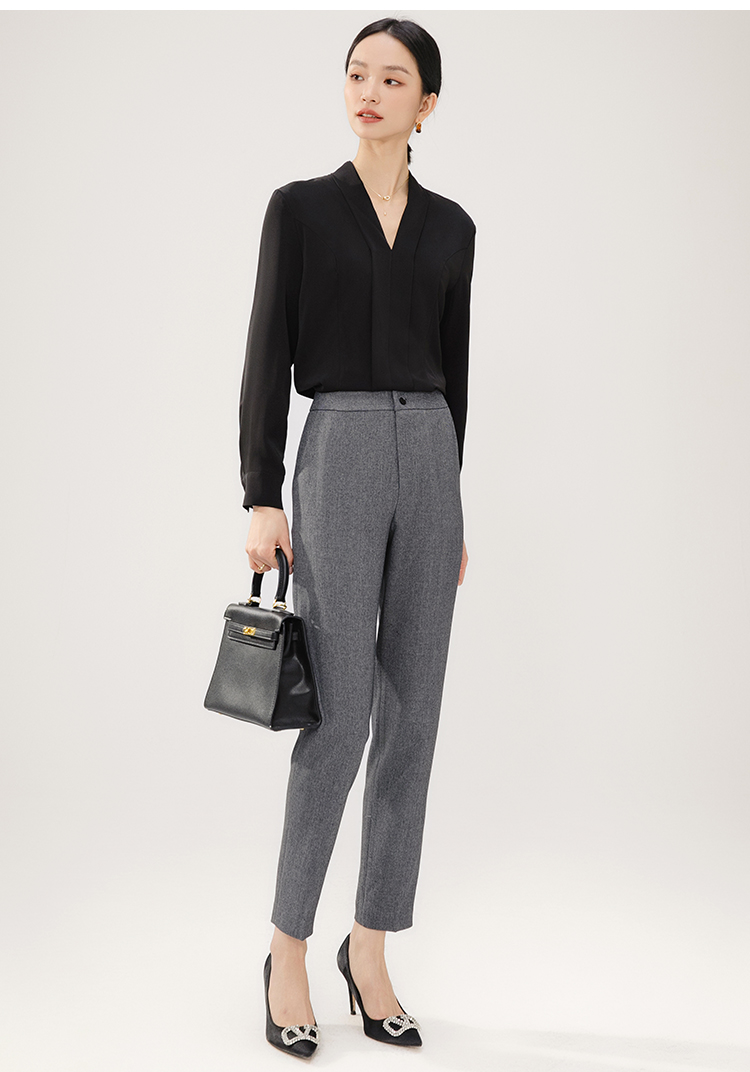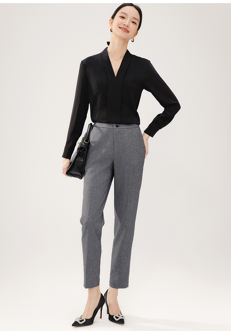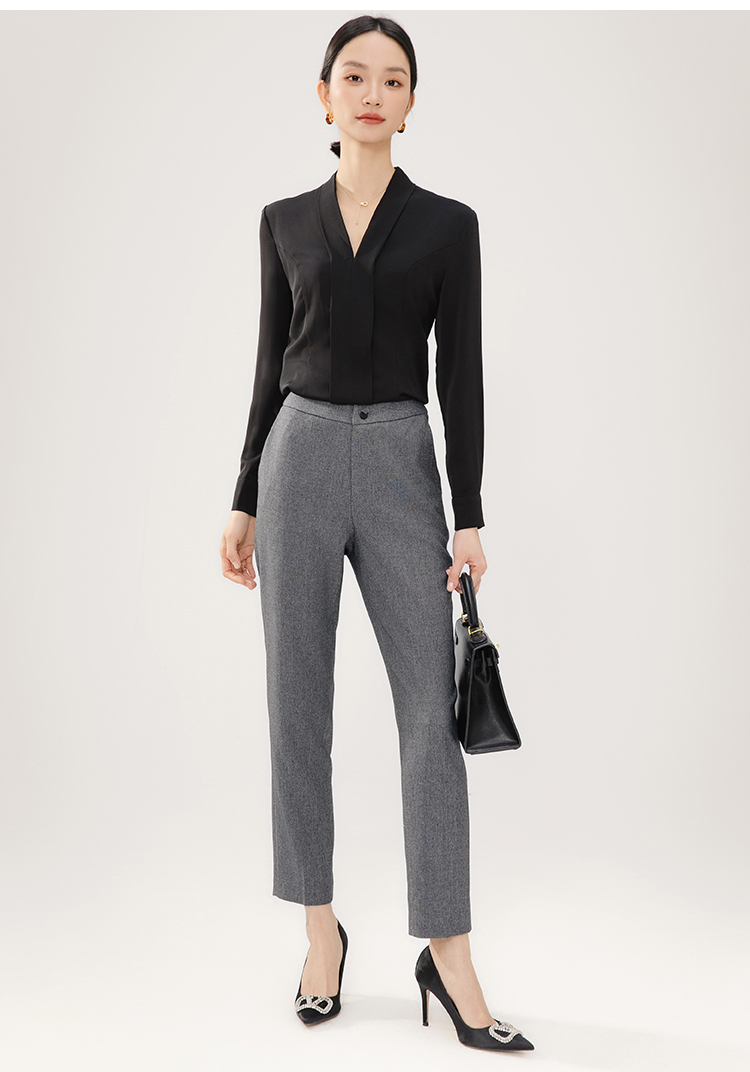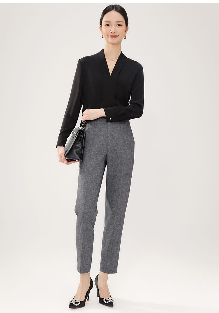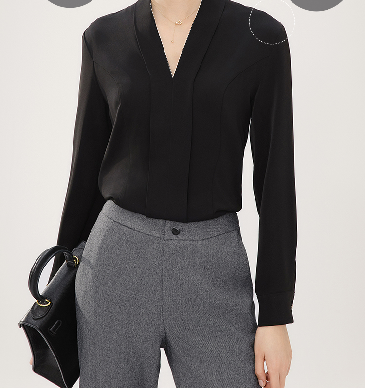 职业衬衫女V领气质时尚工装衬衣高级感百搭教资面试职业正装上衣