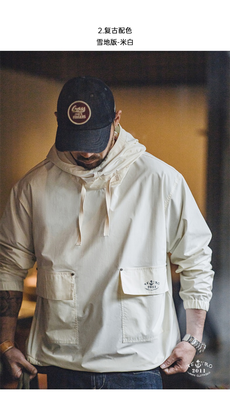 工装优选 美式复古SMOCK甲板服卫衣军事风户外防风连帽外套男春秋