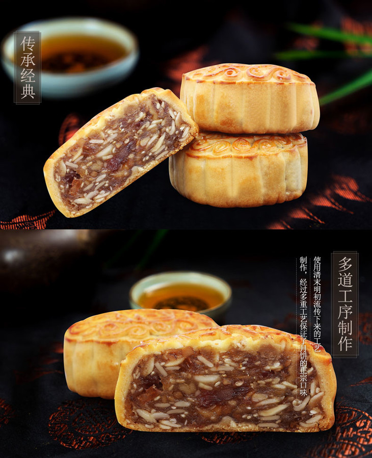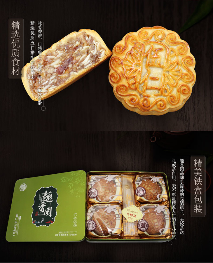 伍仁肉月月饼礼盒装600g(4个)叉烧味月饼 全国包邮