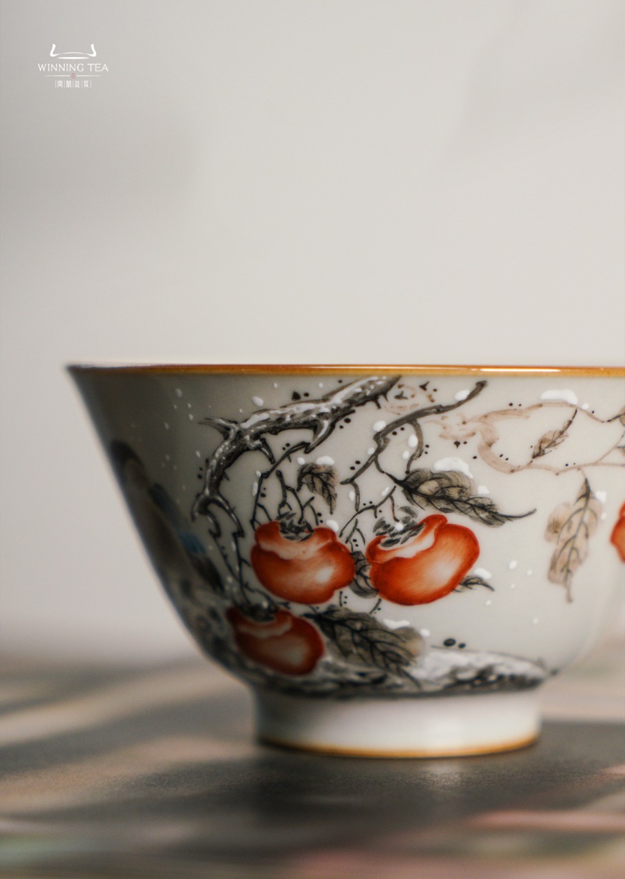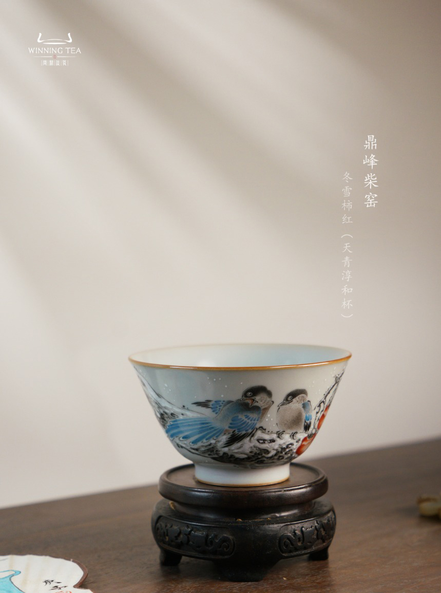 问鼎汝瓷鼎峰柴窑天青淳和杯(冬雪柿红)(缺货)