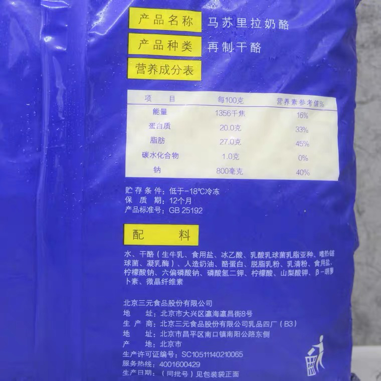 披萨原料三元马苏里拉芝士碎 焗饭拉丝干酪3kg