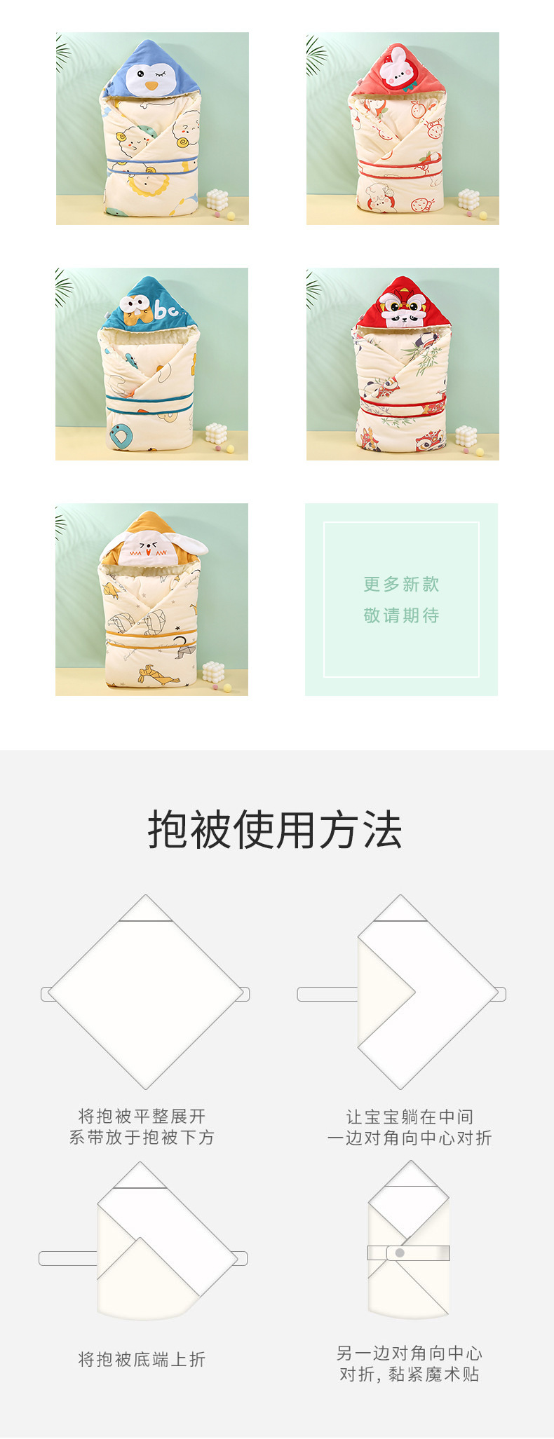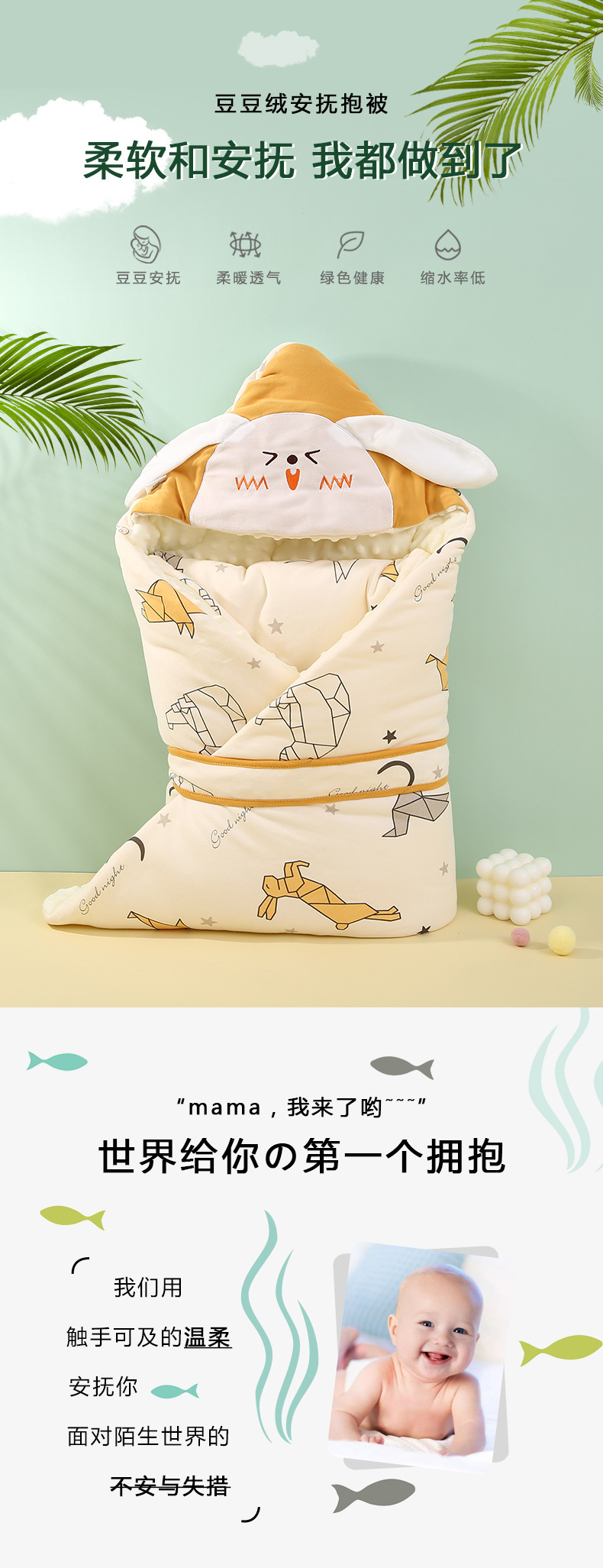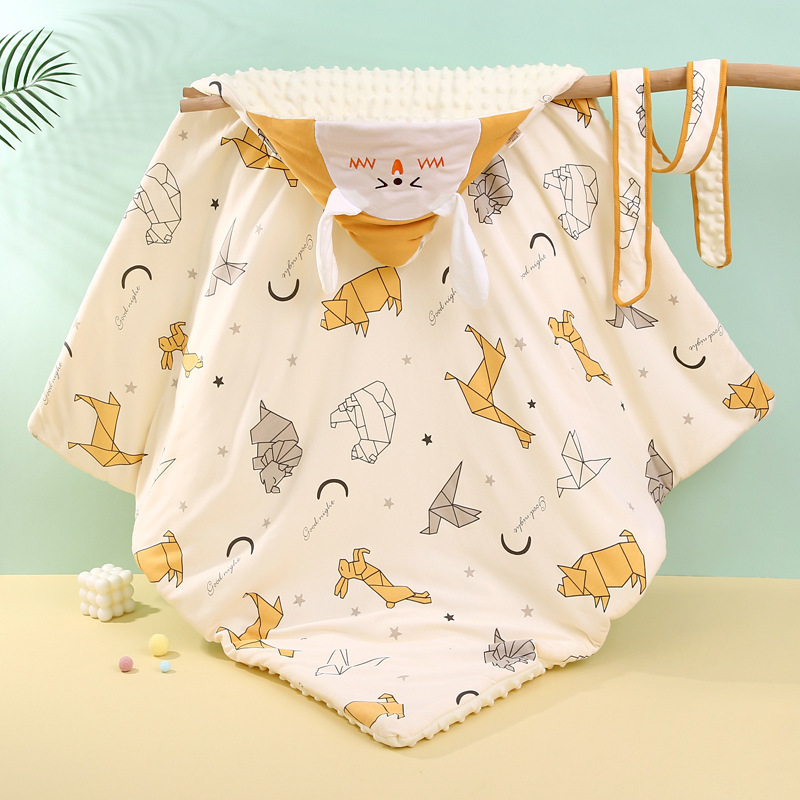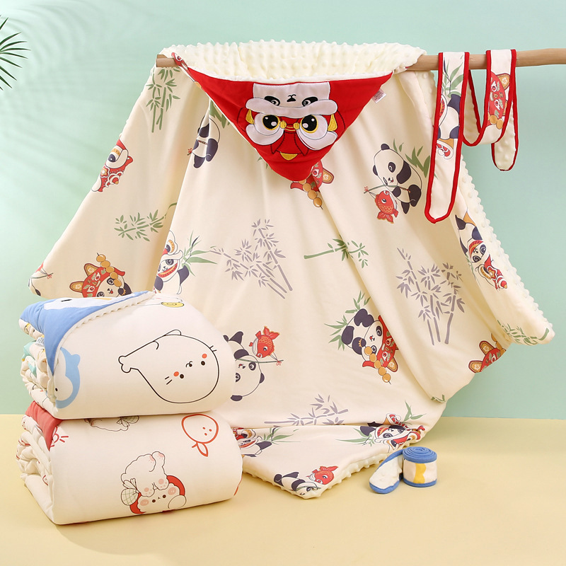 【萌趣动物夹棉豆豆绒抱被】春秋冬季厚款纯棉包裹被初生小包被宝宝产房婴儿抱被新生儿包单