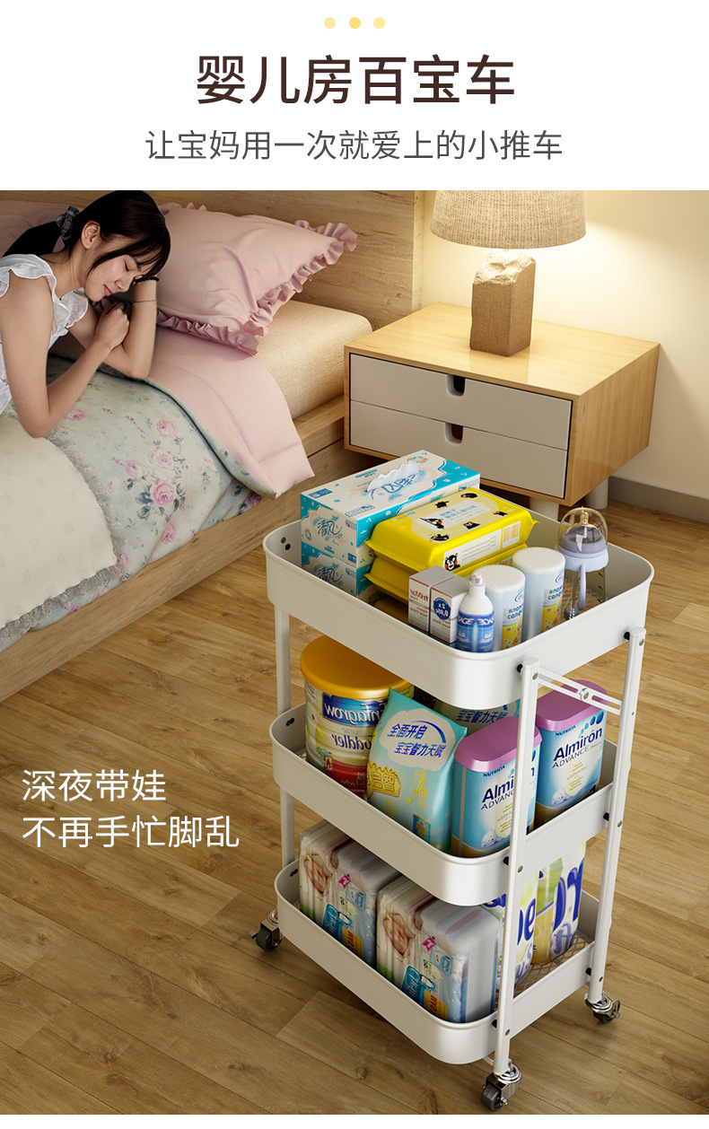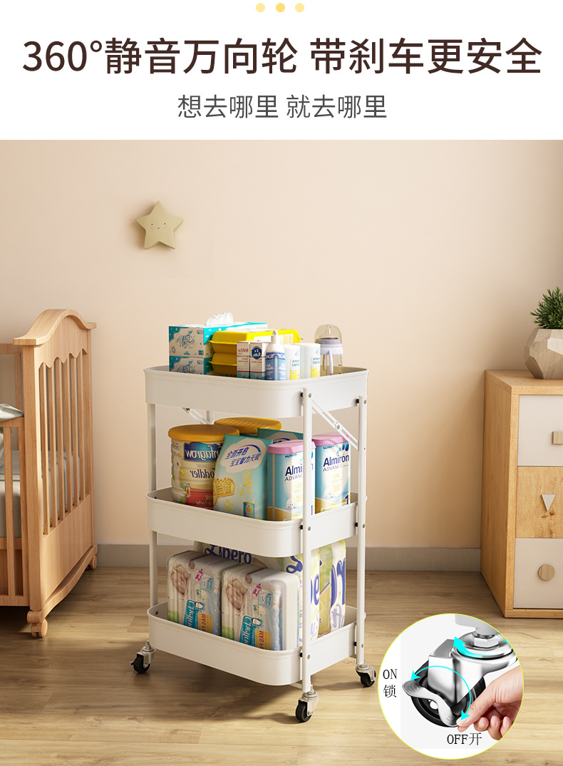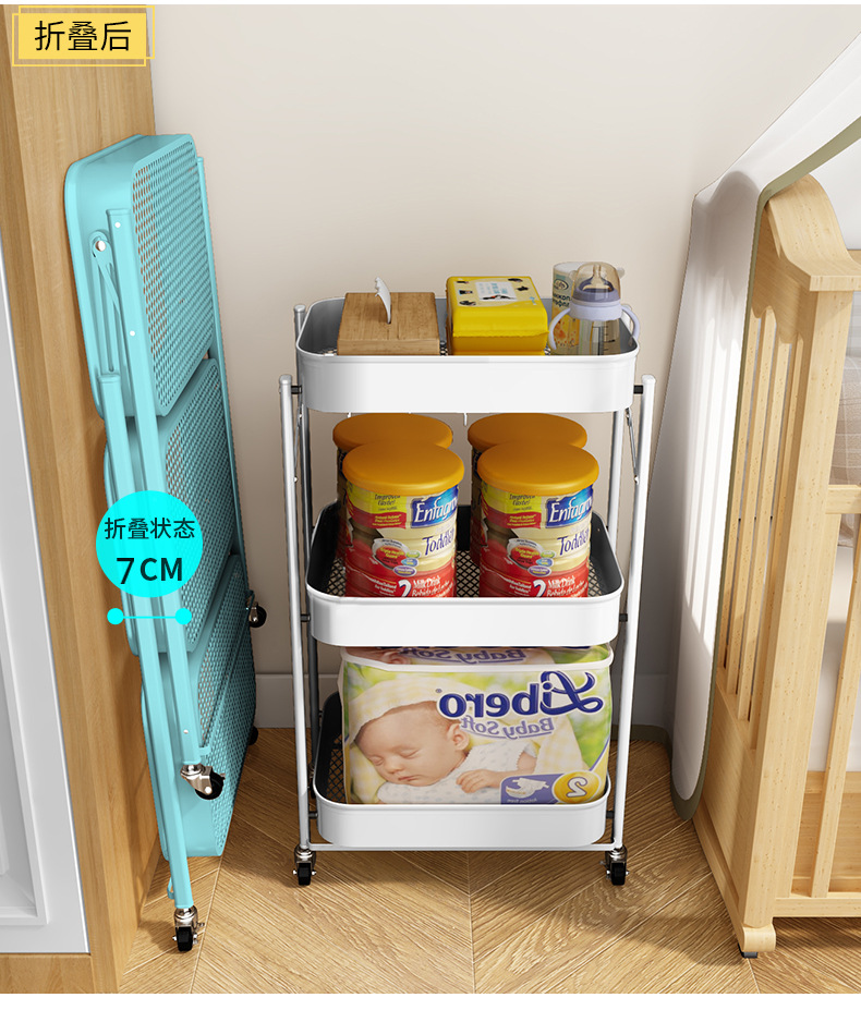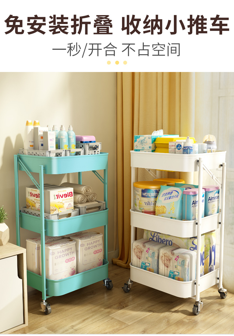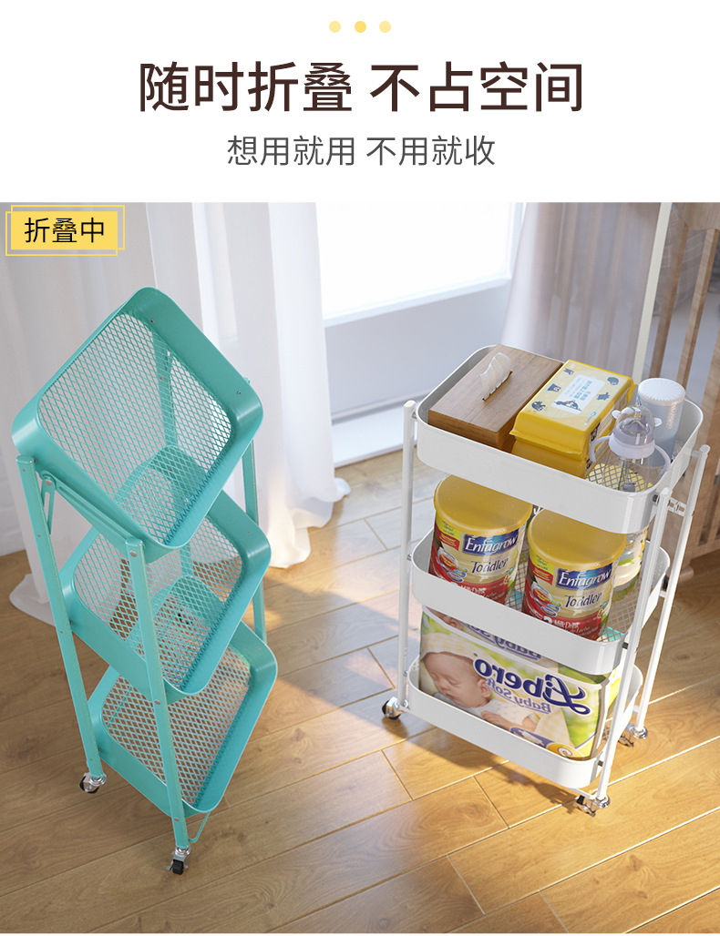【可折叠置物架】免安装折叠厨房置物架落地推车多层蔬菜篮婴儿用品收纳架小推车可移动