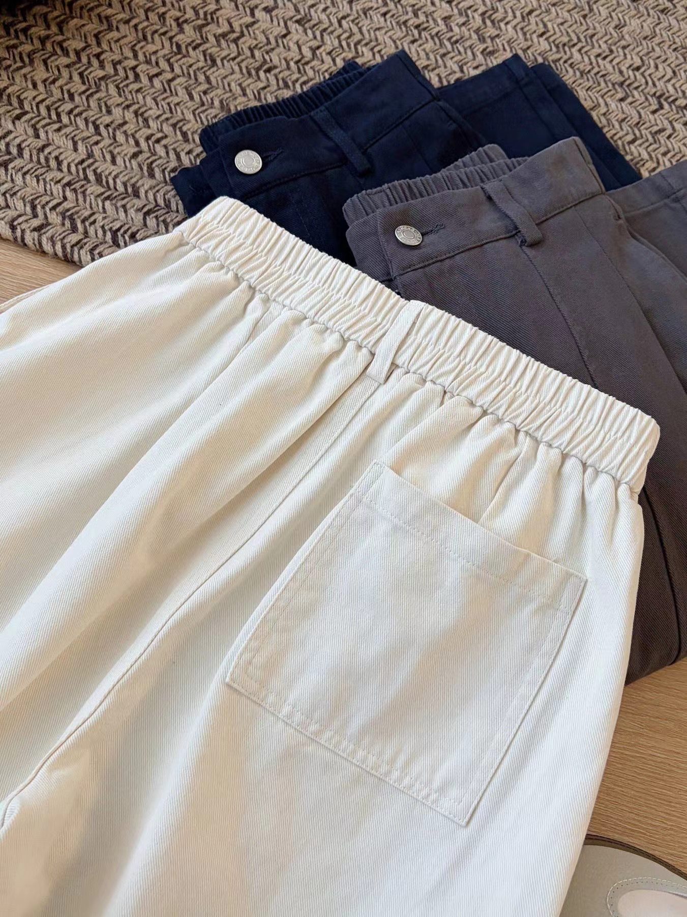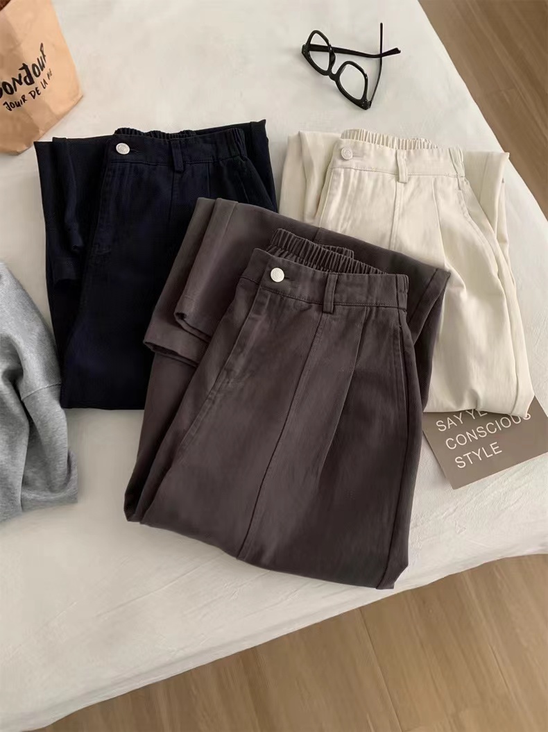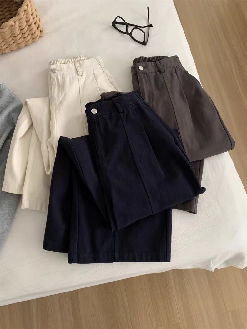 2026春季新款简约舒适棉质杨桃裤春款直筒裤,告别紧绷,拥抱松弛感。这三条阔腿裤,是为“舒服又好看”而生的:精选挺括面料,垂坠感拉满,立体压褶修饰腿型,松紧腰适配各种身材,藏蓝、深灰、米白三色,承包你一整个季节的穿搭。不用费力搭配,套上就能出门,自在又时髦。