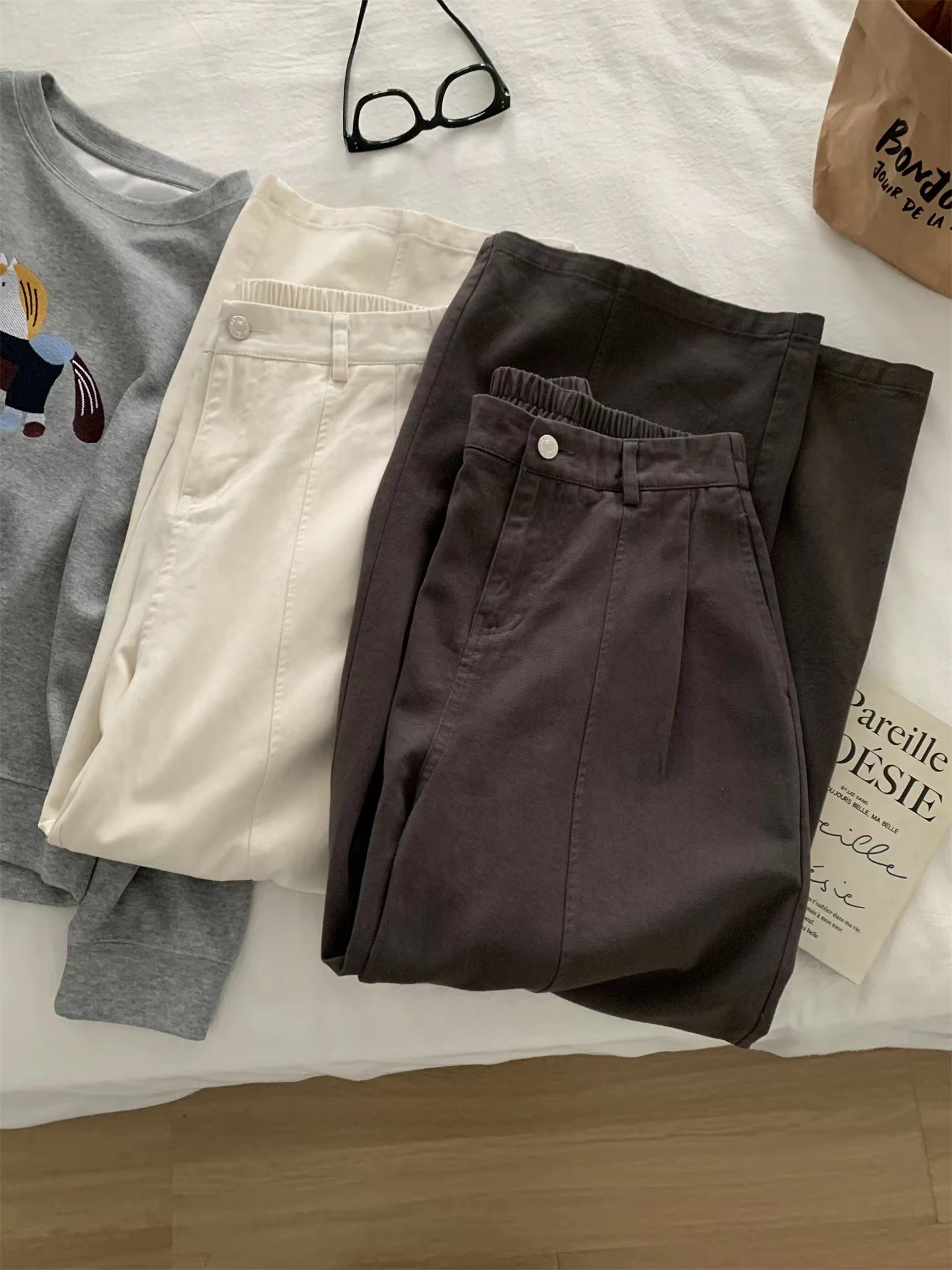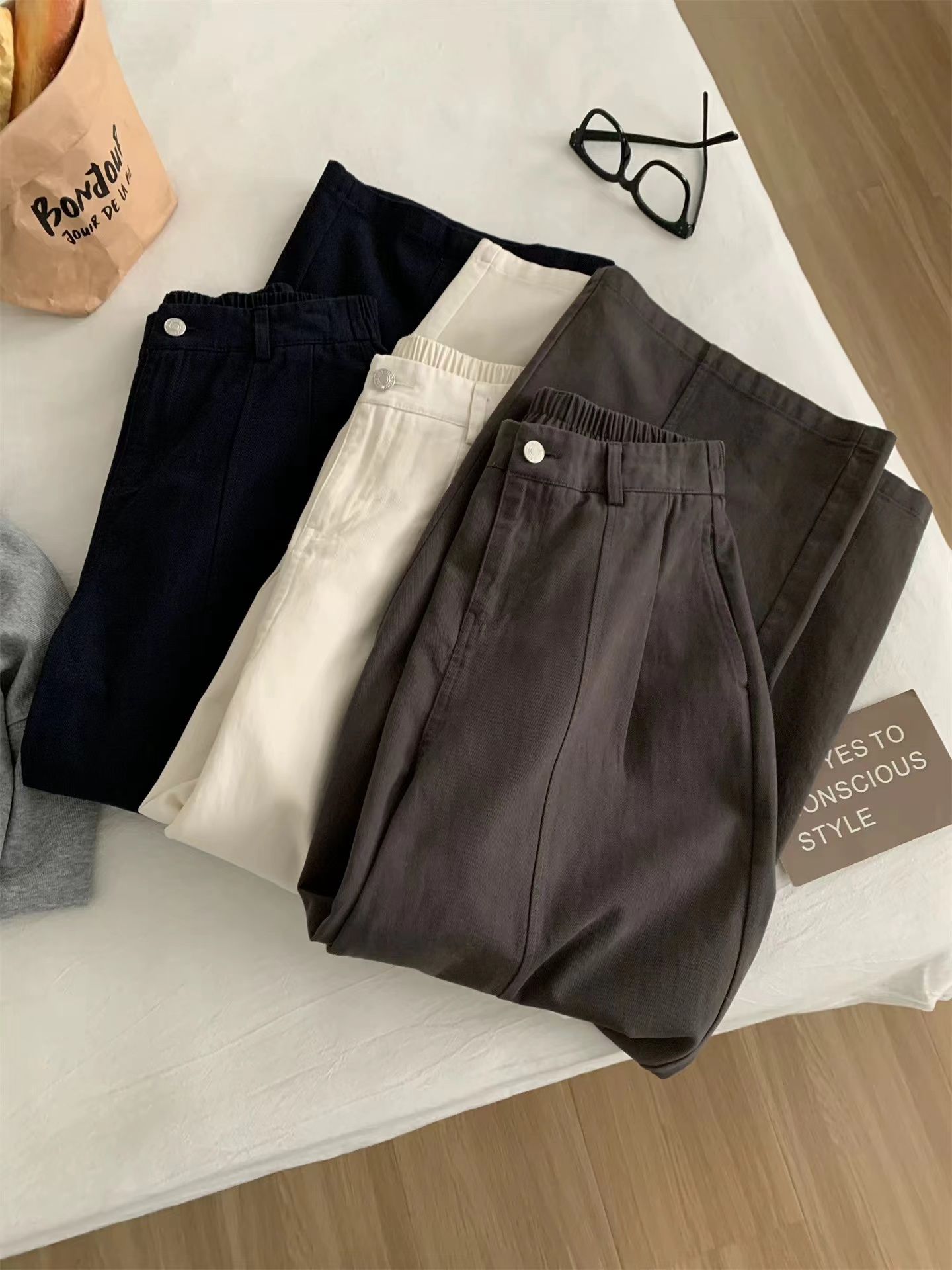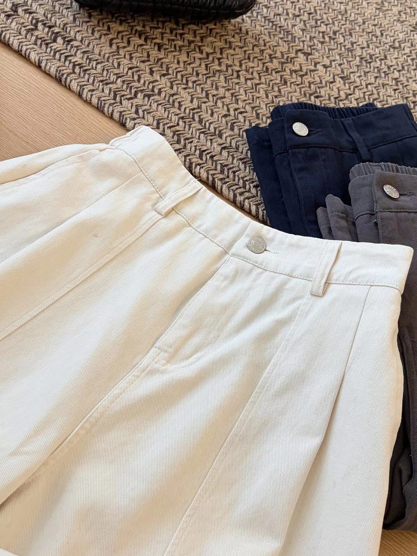 2026春季新款简约舒适棉质杨桃裤春款直筒裤,告别紧绷,拥抱松弛感。这三条阔腿裤,是为“舒服又好看”而生的:精选挺括面料,垂坠感拉满,立体压褶修饰腿型,松紧腰适配各种身材,藏蓝、深灰、米白三色,承包你一整个季节的穿搭。不用费力搭配,套上就能出门,自在又时髦。