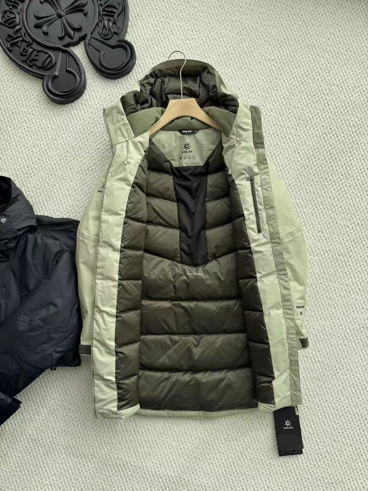 ?全衣防风结构360度防风止寒?,穿上它暖和又出片!客订辅料,双向拉链户外活动更方便,所有YKK拉链全部是原版带立体钢印拉头,顺滑耐用不卡顿~门襟内侧有拉链口袋,下摆抽绳可调松紧!门襟内侧有拉链口袋,下摆抽绳可调松紧!中高领风帽,以及可调节袖口?,进一步防止寒风倒灌,?给保暖加分,加高立领防护护颈,叠加门襟双层保暖防风!拉头配顺色织带拉绳!帽子全部做充绒,领子加绒设计不返凉,细节真的很贴心!左肩一枚刺绣顺色品牌logo,非常精 致!袖口魔术贴可以收合,防风性up up!600蓬鹅绒羽绒填充洁净无异味!高效保暖锁温,?毛羽细软,绒球大蓬松度高,充盈空间大,轻盈不压身,同时又特别保暖!外层高科技的TEC3L硬壳面料防水面料,防风,防寒,防水效果贼拉好,接缝全压胶带来了?防风拒水的保护!外阻冷防风,内蓄热恒温,锁住温度不流失,寒气无法侵入,冻不透,真的冻不透!里层100聚酯纤维,轻薄柔软,穿脱无阻碍感~三标吊牌齐全,这才是来自原厂的底气,仪式感拉满,安全感给足,送人自留都嘎嘎都有面儿!