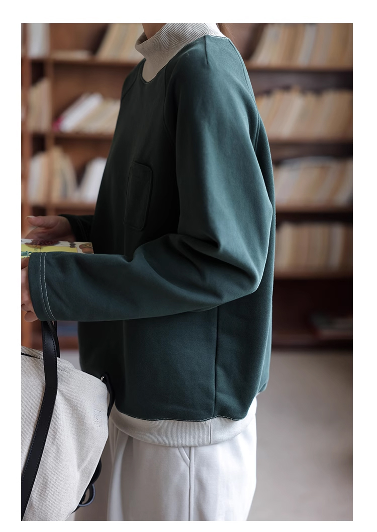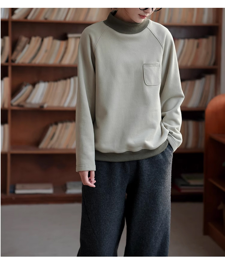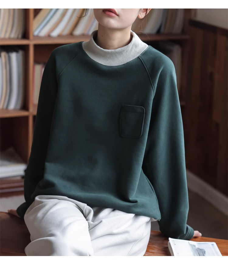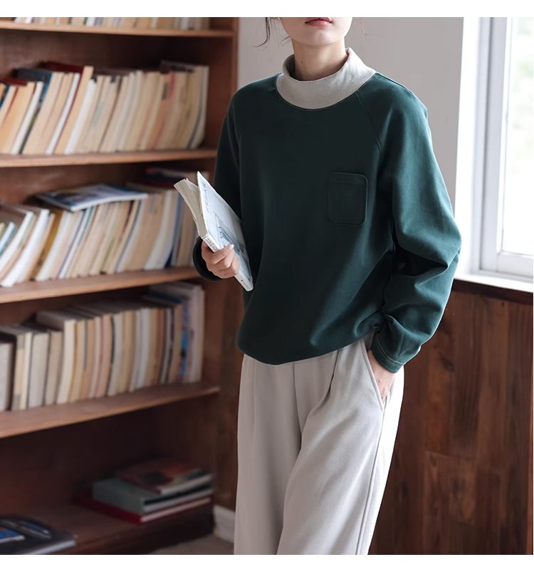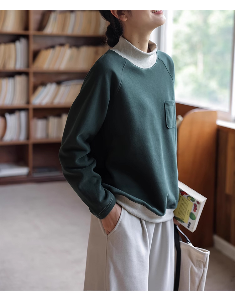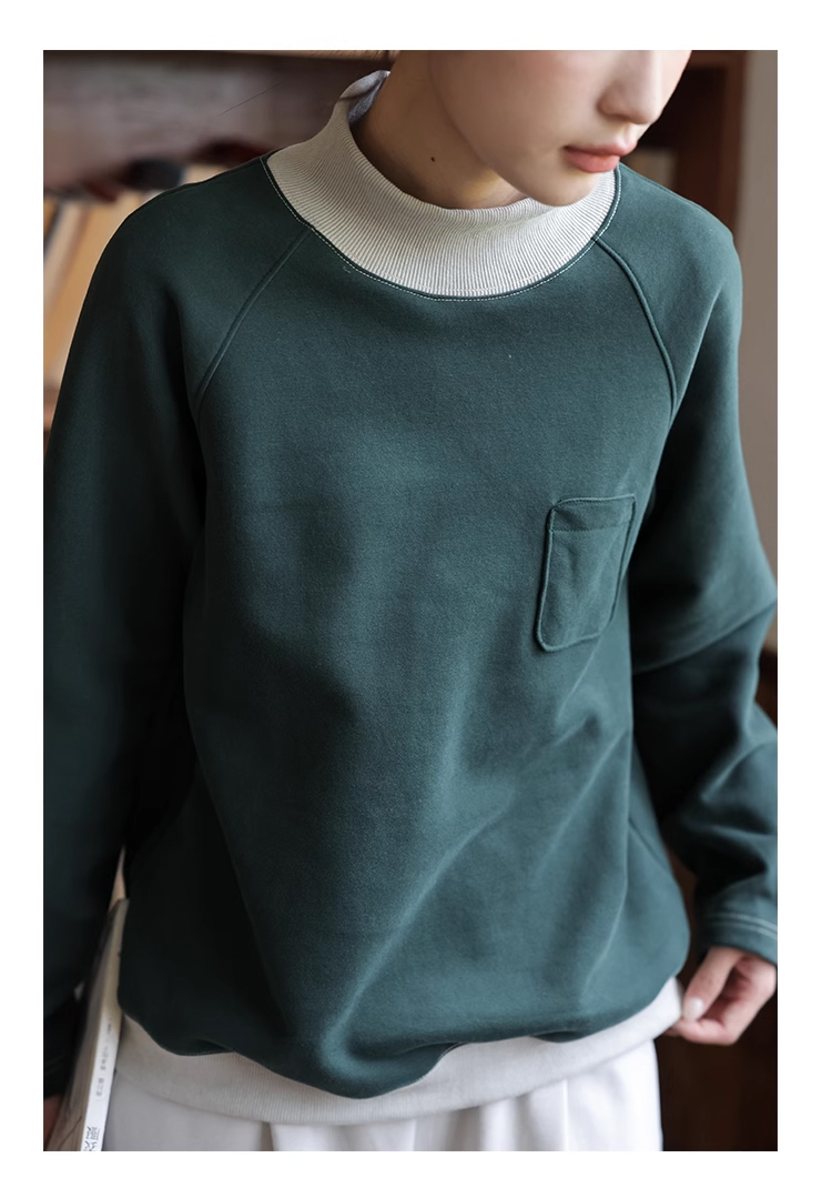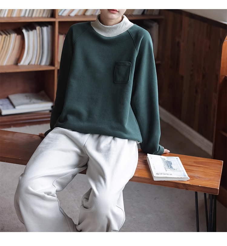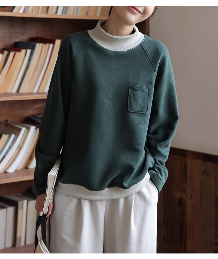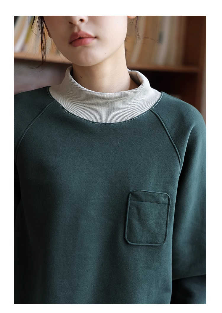 裁缝学苑AQ411毛圈棉磨绒加厚高领撞色插肩袖卫衣纸样女装上衣版型样板