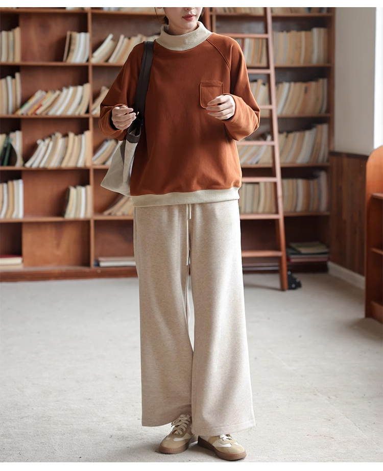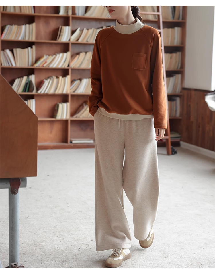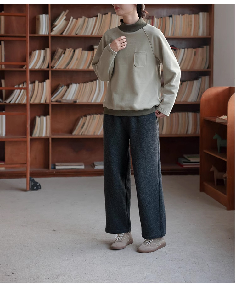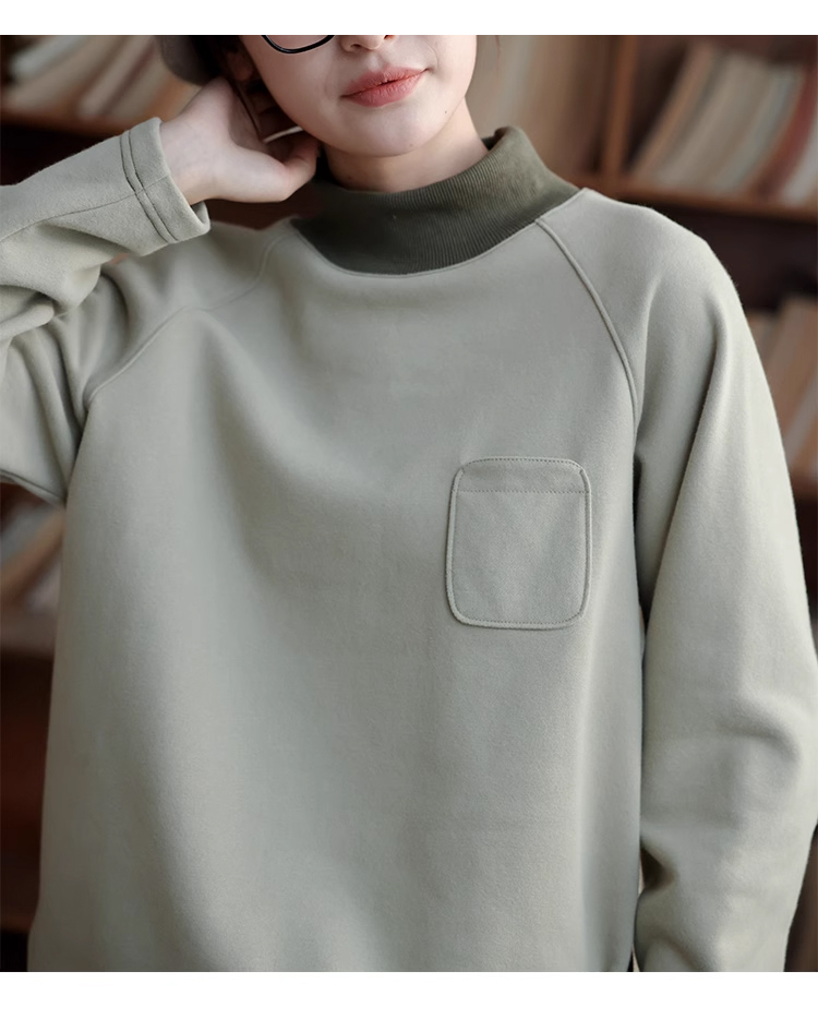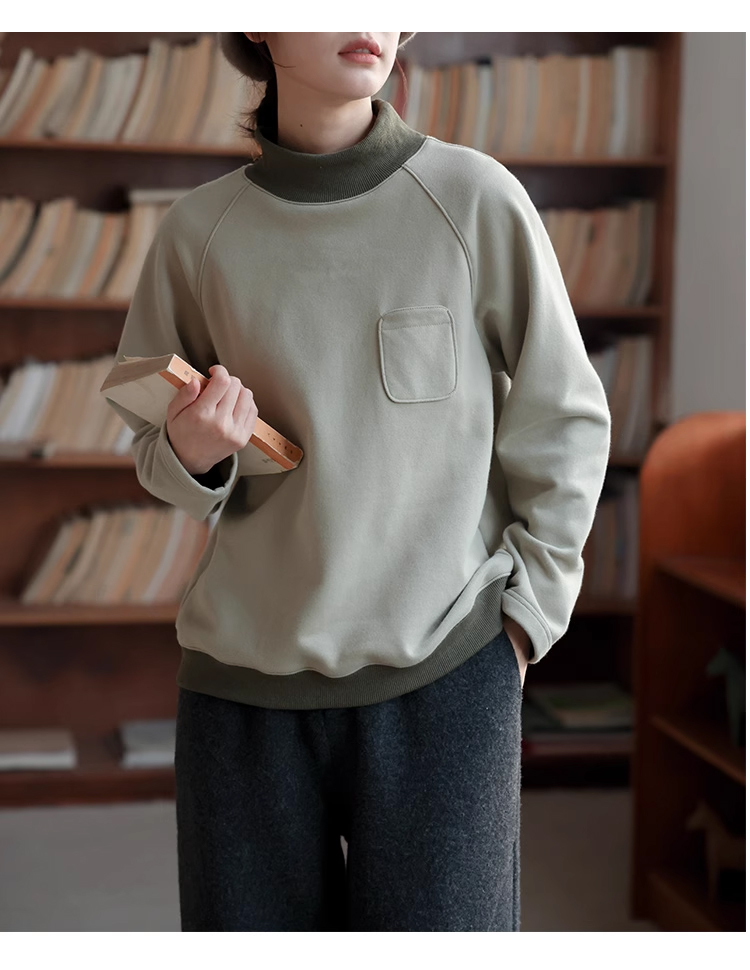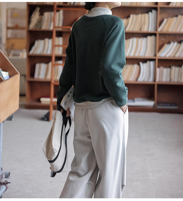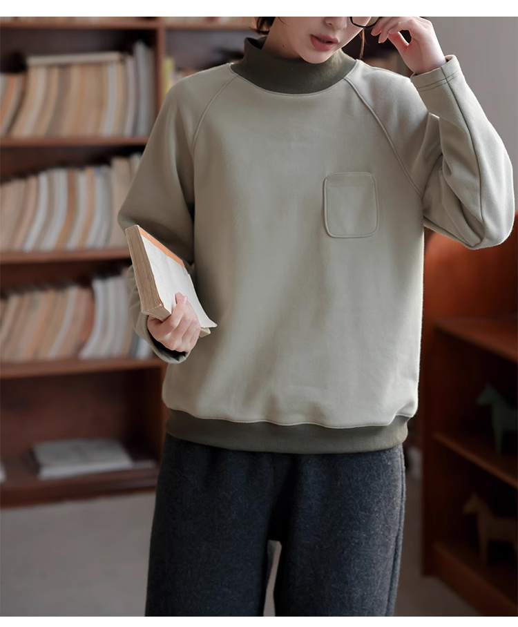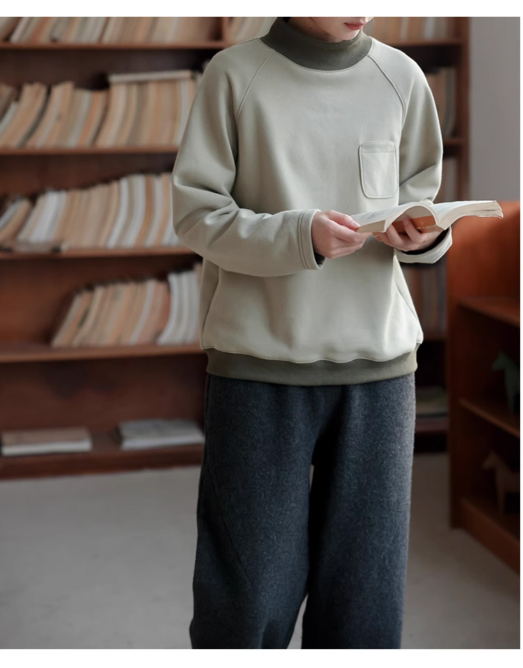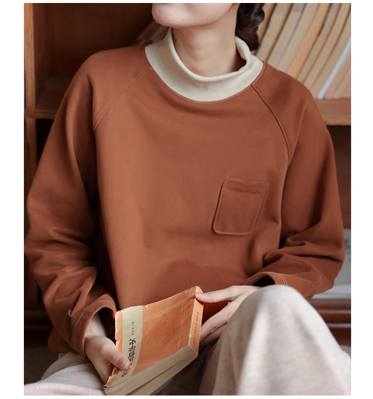 裁缝学苑AQ411毛圈棉磨绒加厚高领撞色插肩袖卫衣纸样女装上衣版型样板