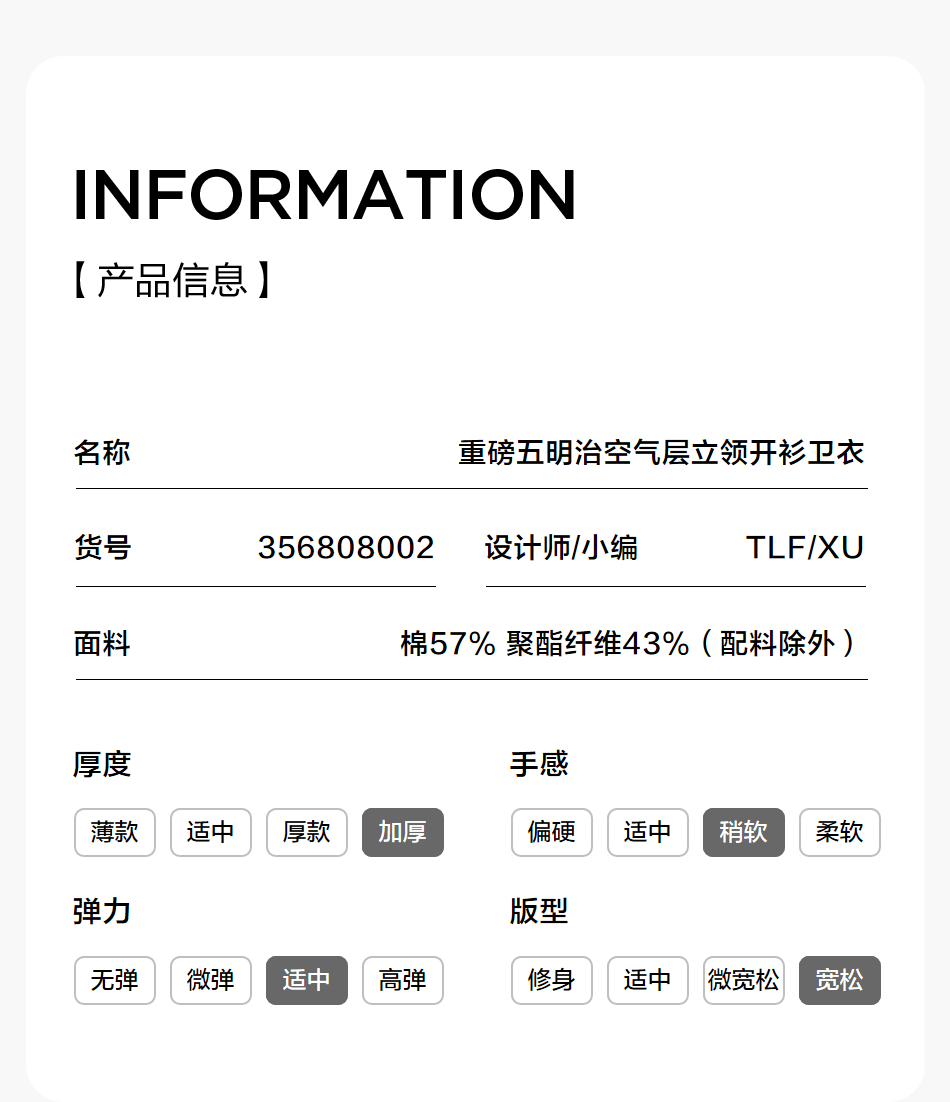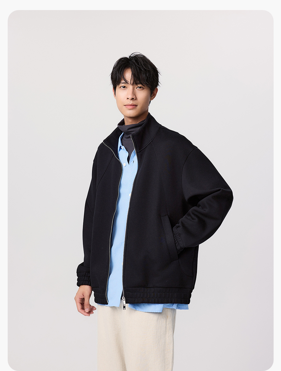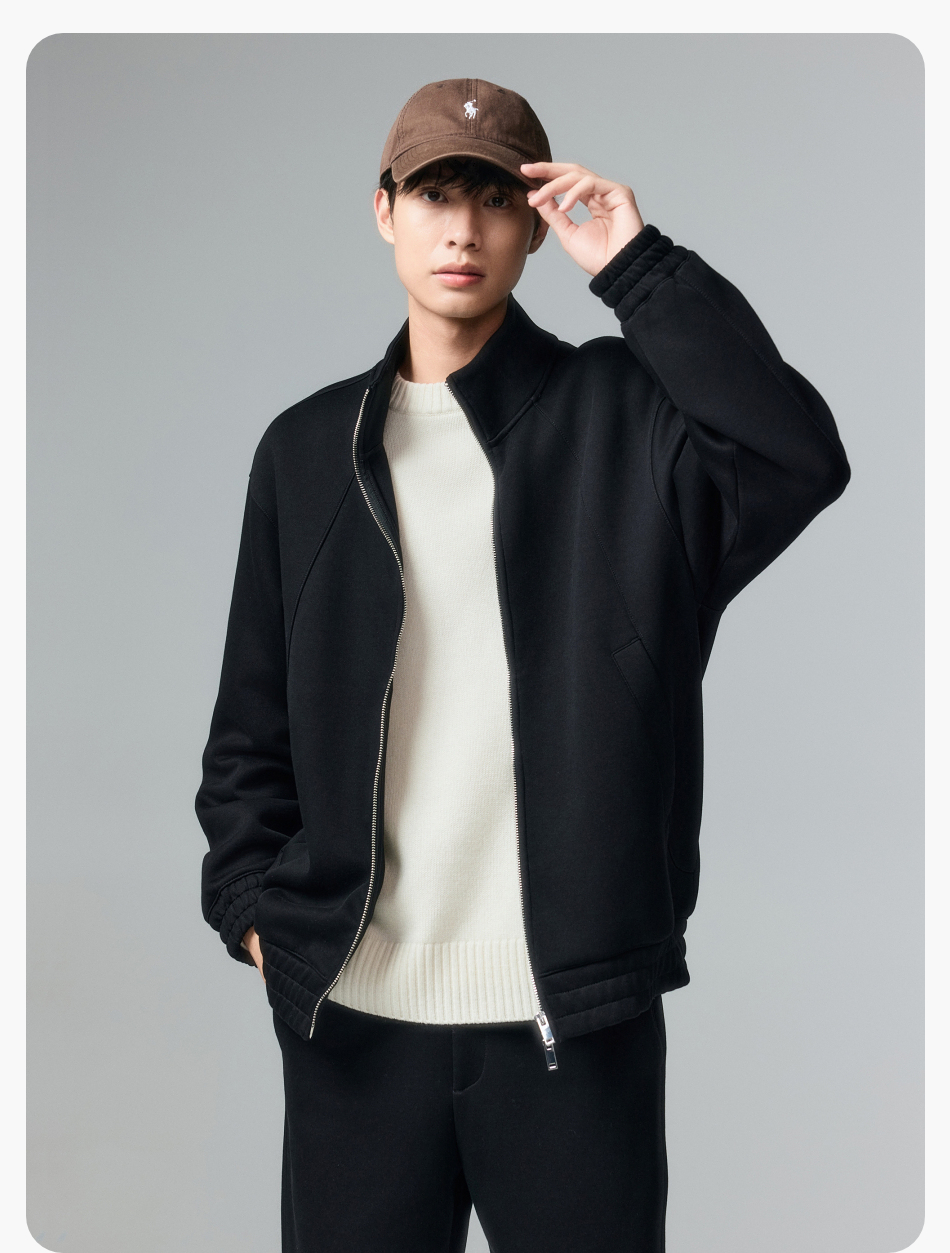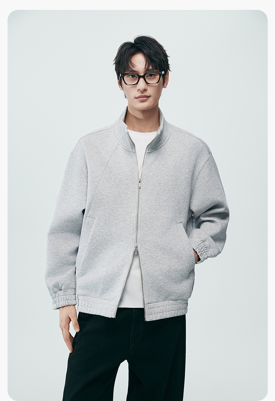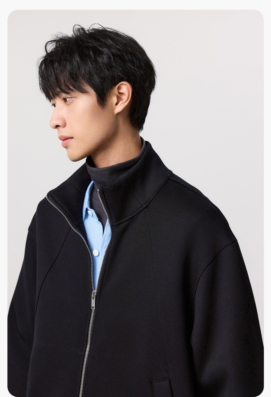 棉仓356808002-new-重磅五明治空气层立领开衫卫衣