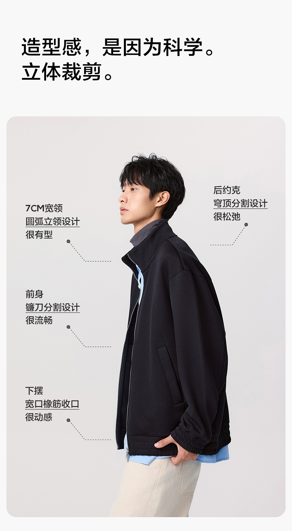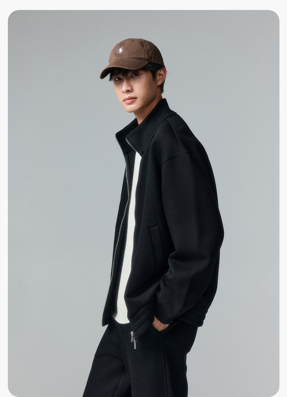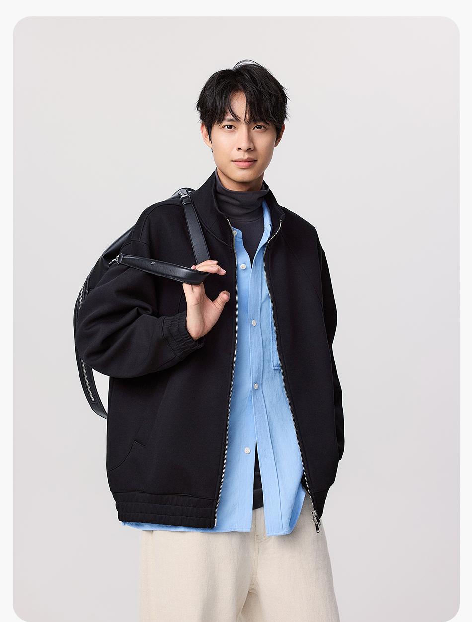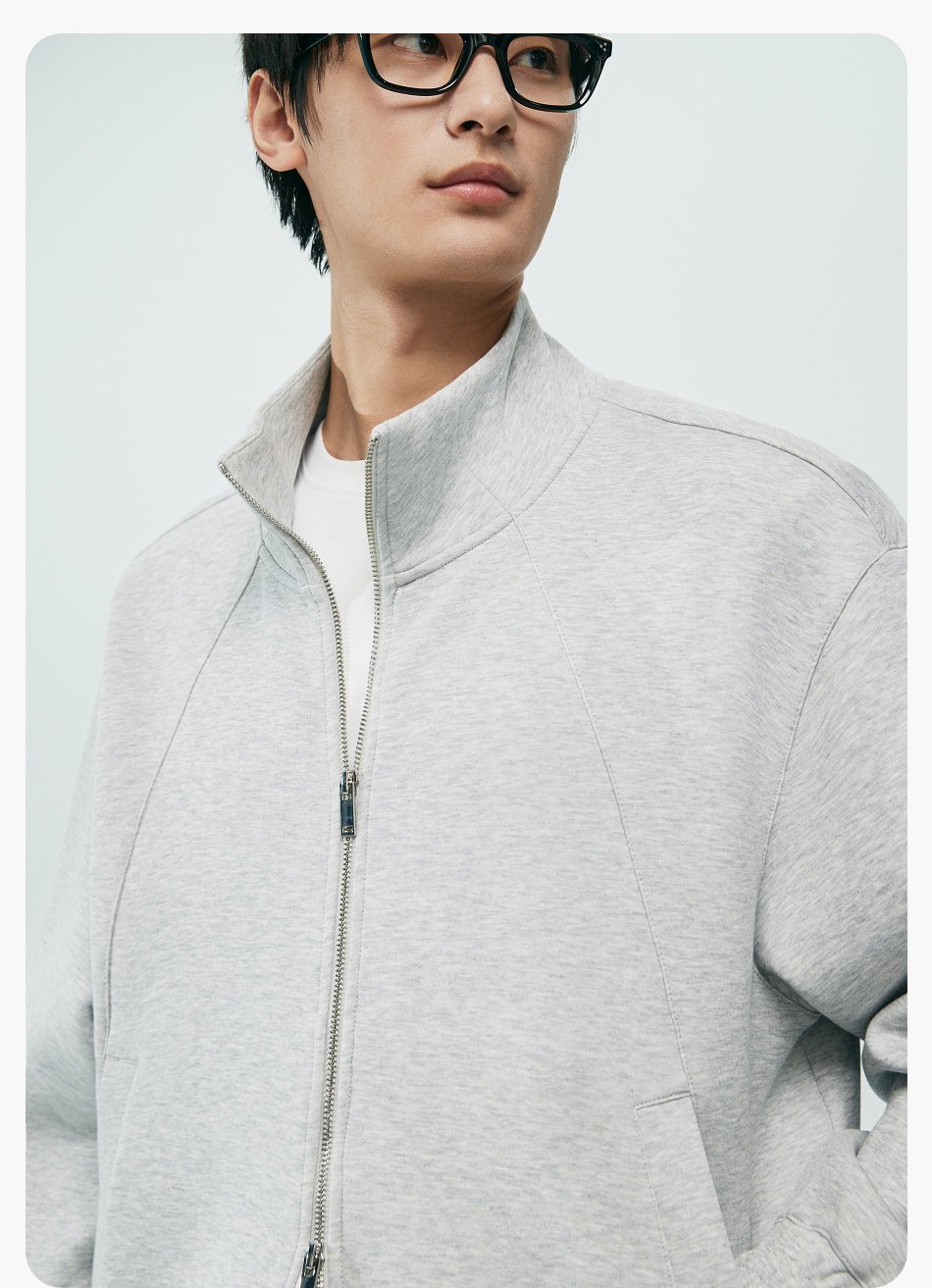 棉仓356808002-new-重磅五明治空气层立领开衫卫衣