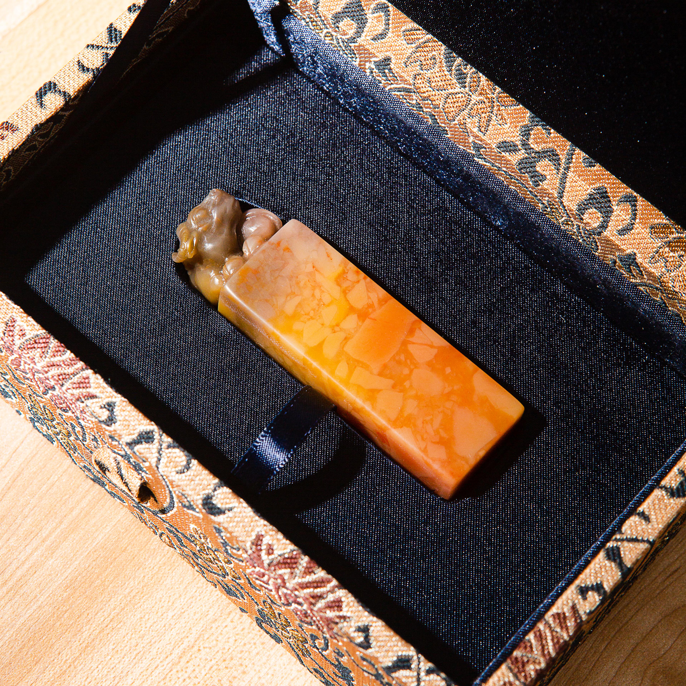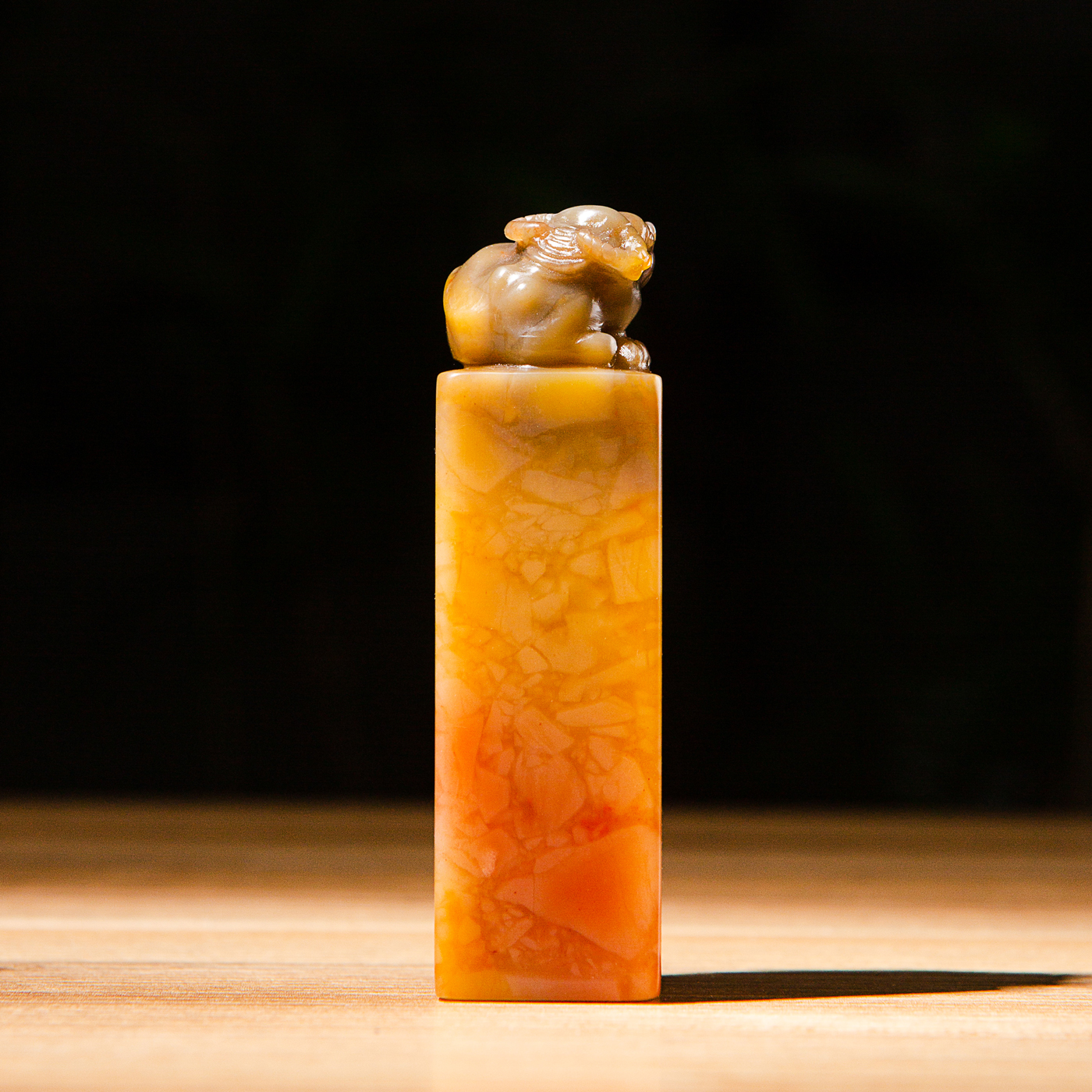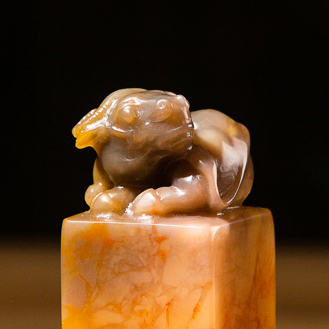 寿山石老料手雕“卧牛”方章,选料为存放几十年之老料,料质极佳。其雕工精细,题材刻画生动,极具艺术效果和实用性。