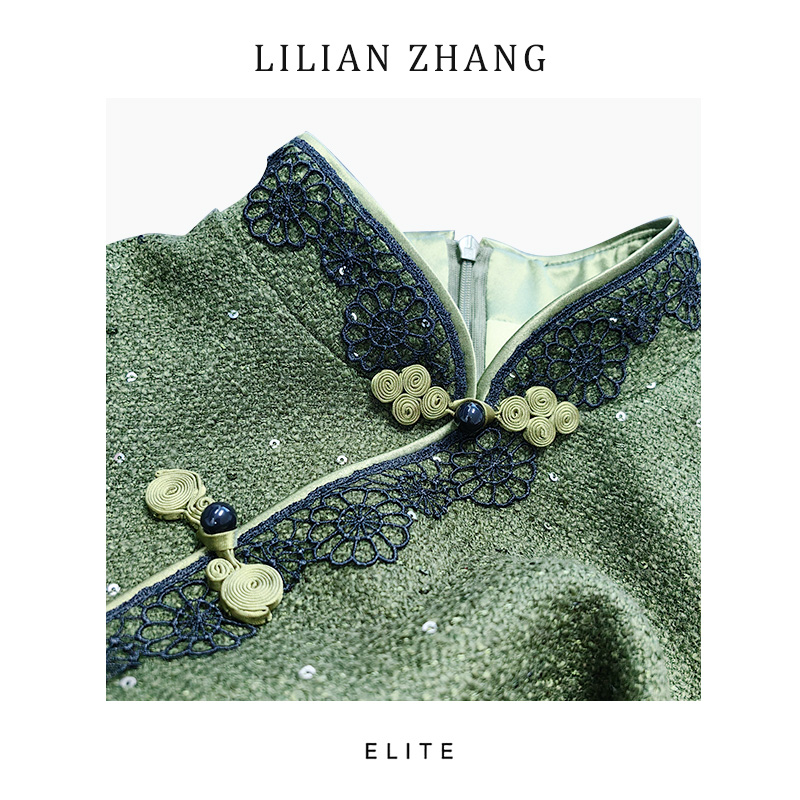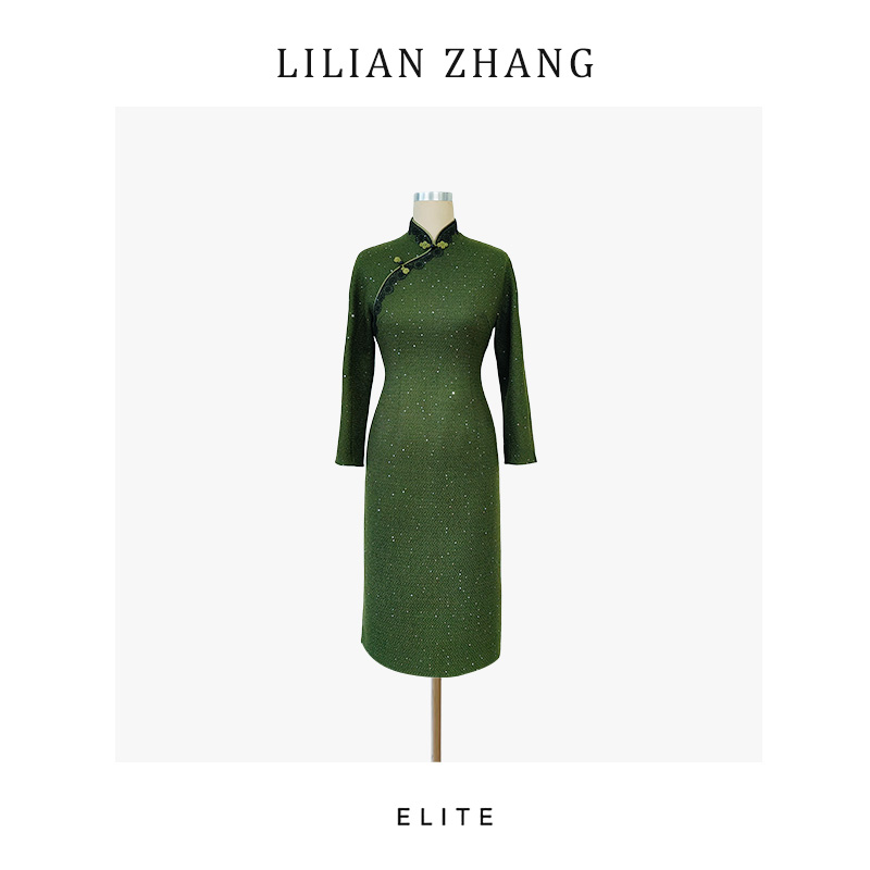 定制—静奢风—墨玉提梁—新中式墨绿东方韵味旗袍连袖连衣裙2501216