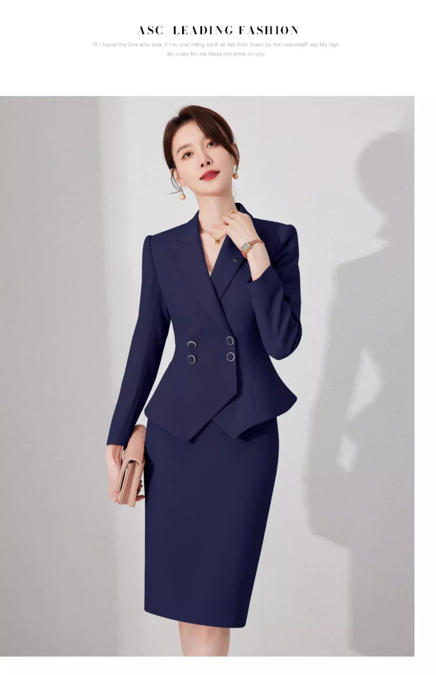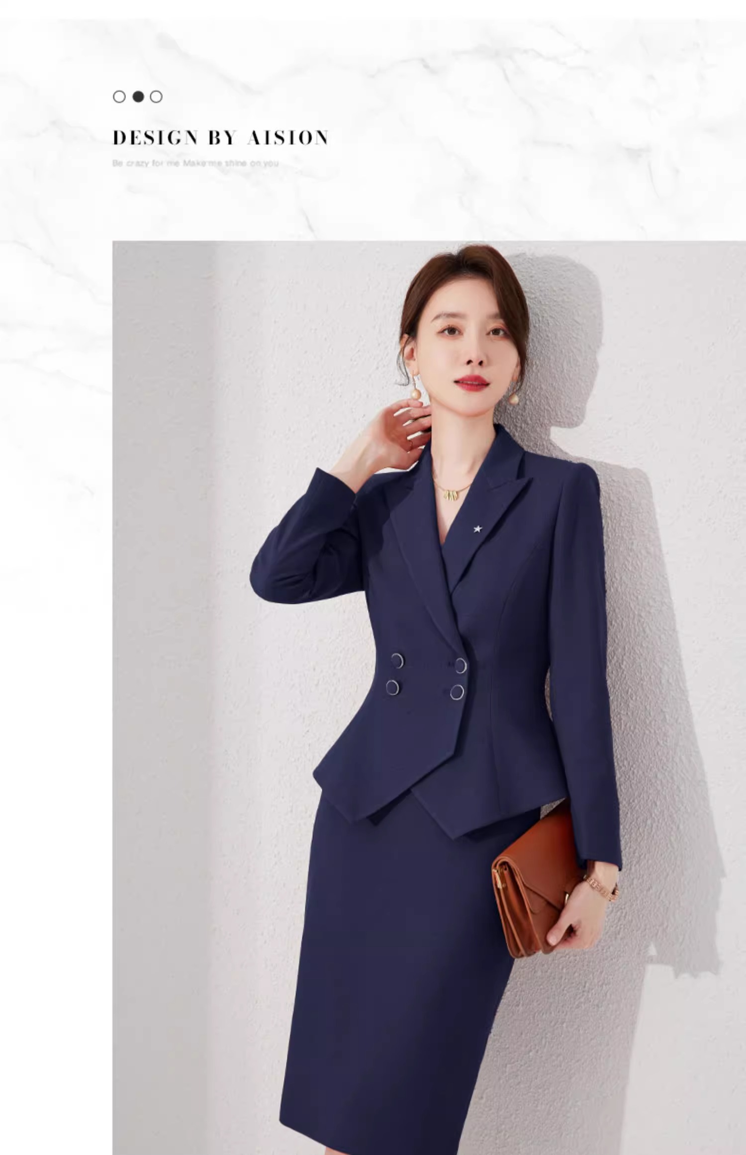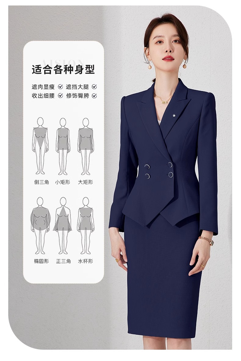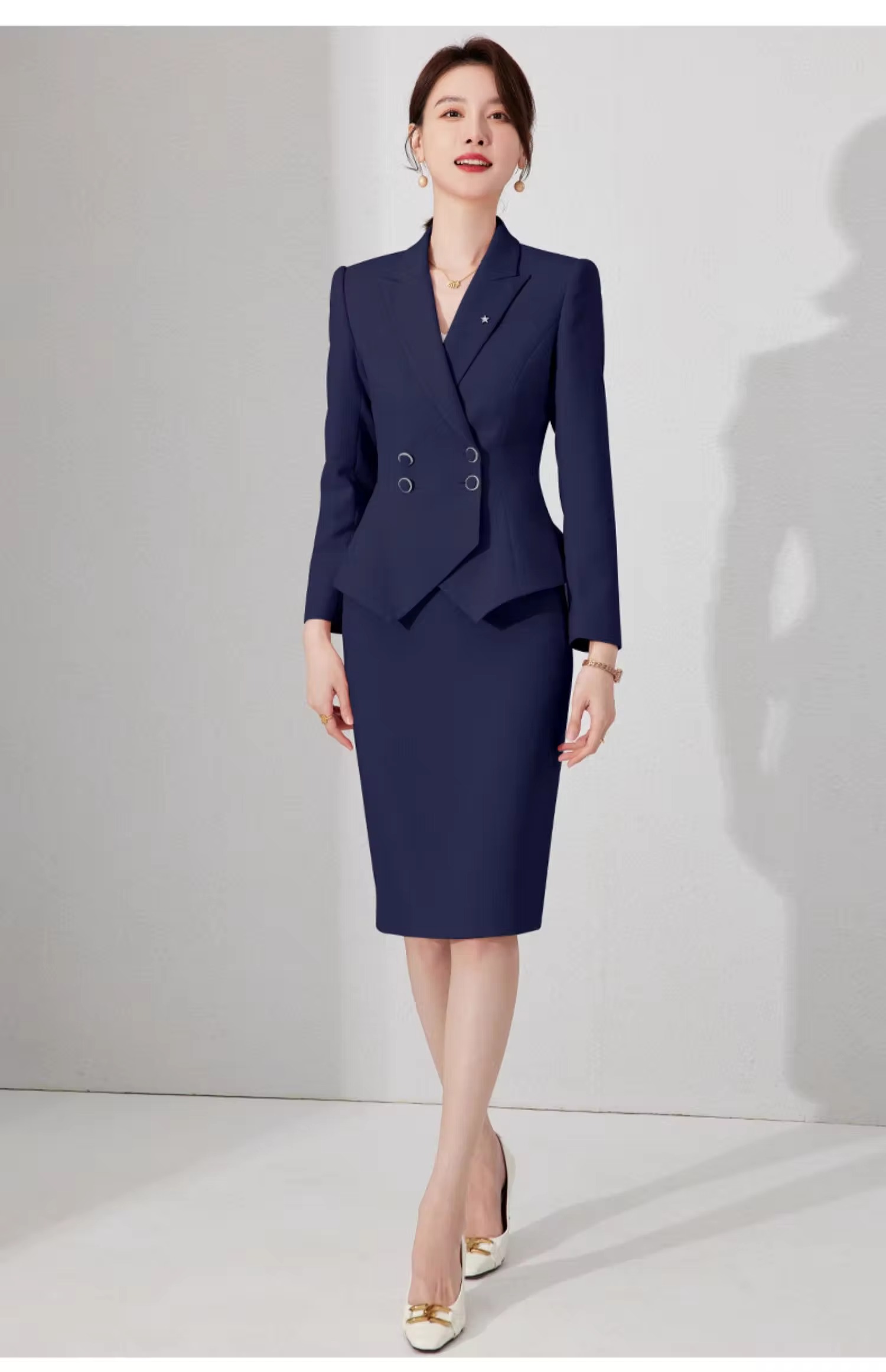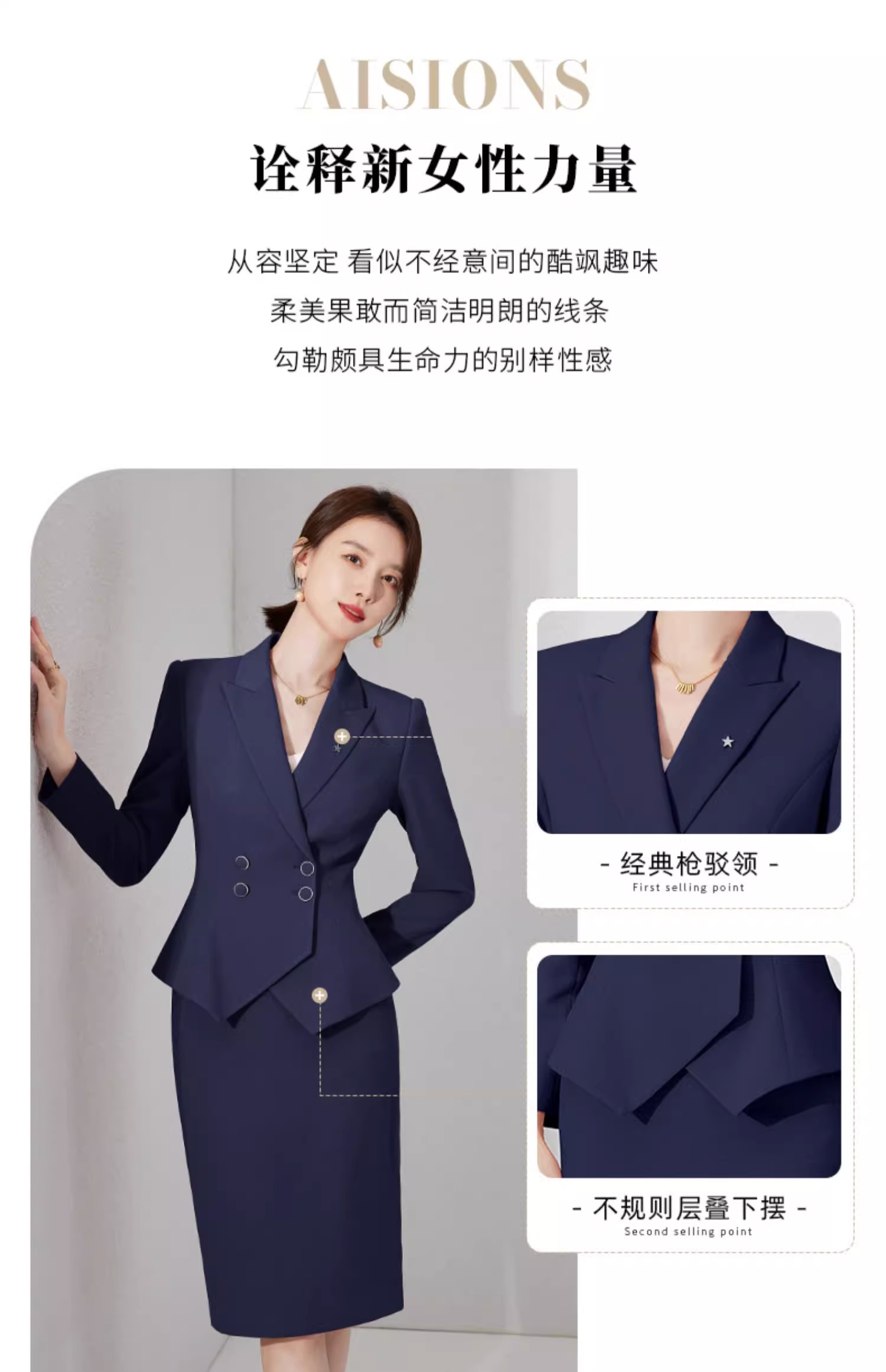 艾尚臣藏青色西装套裙女工装美容院酒店前台接待职业装OL工作服