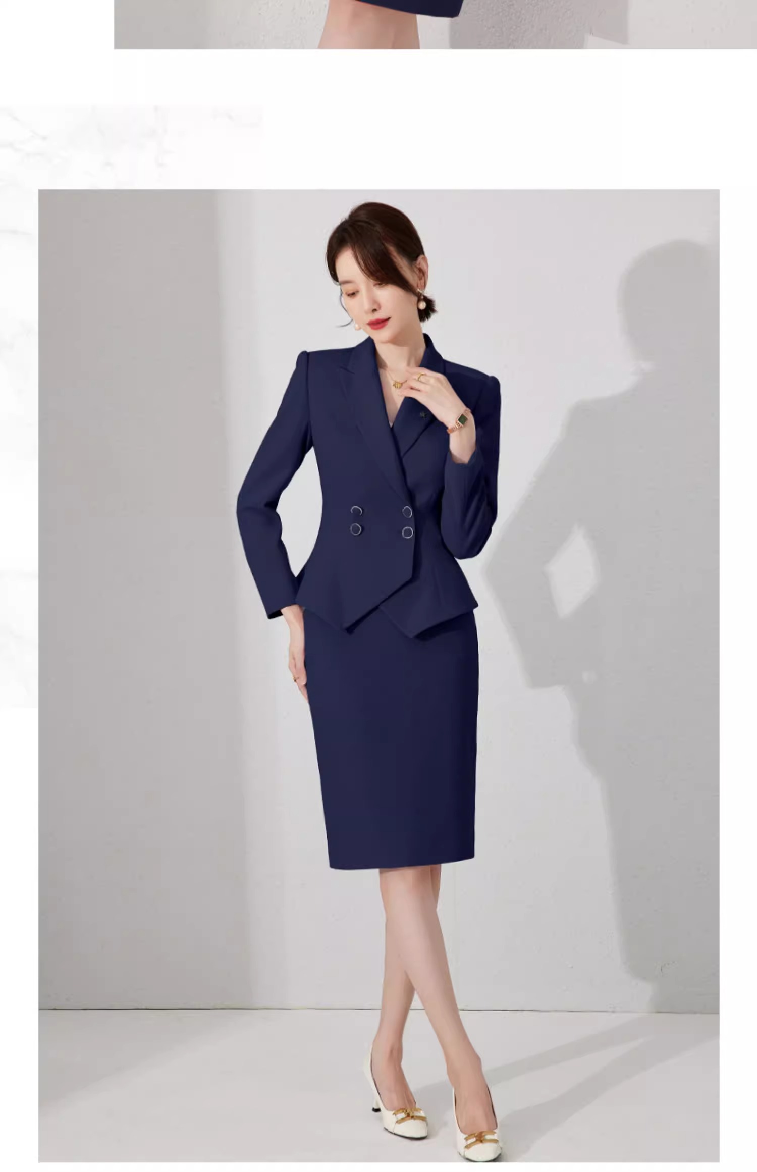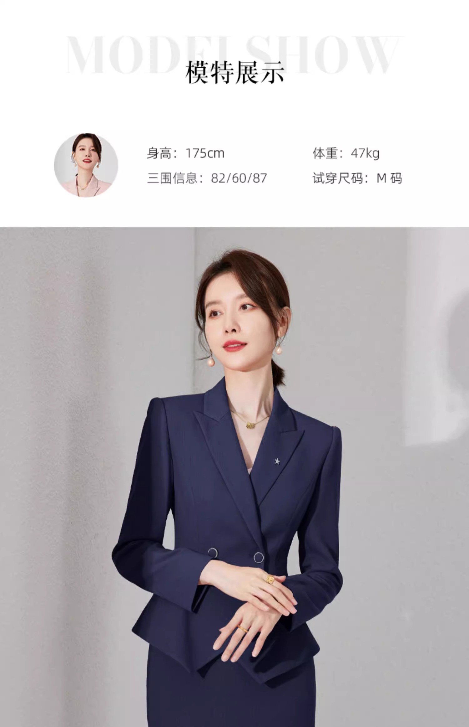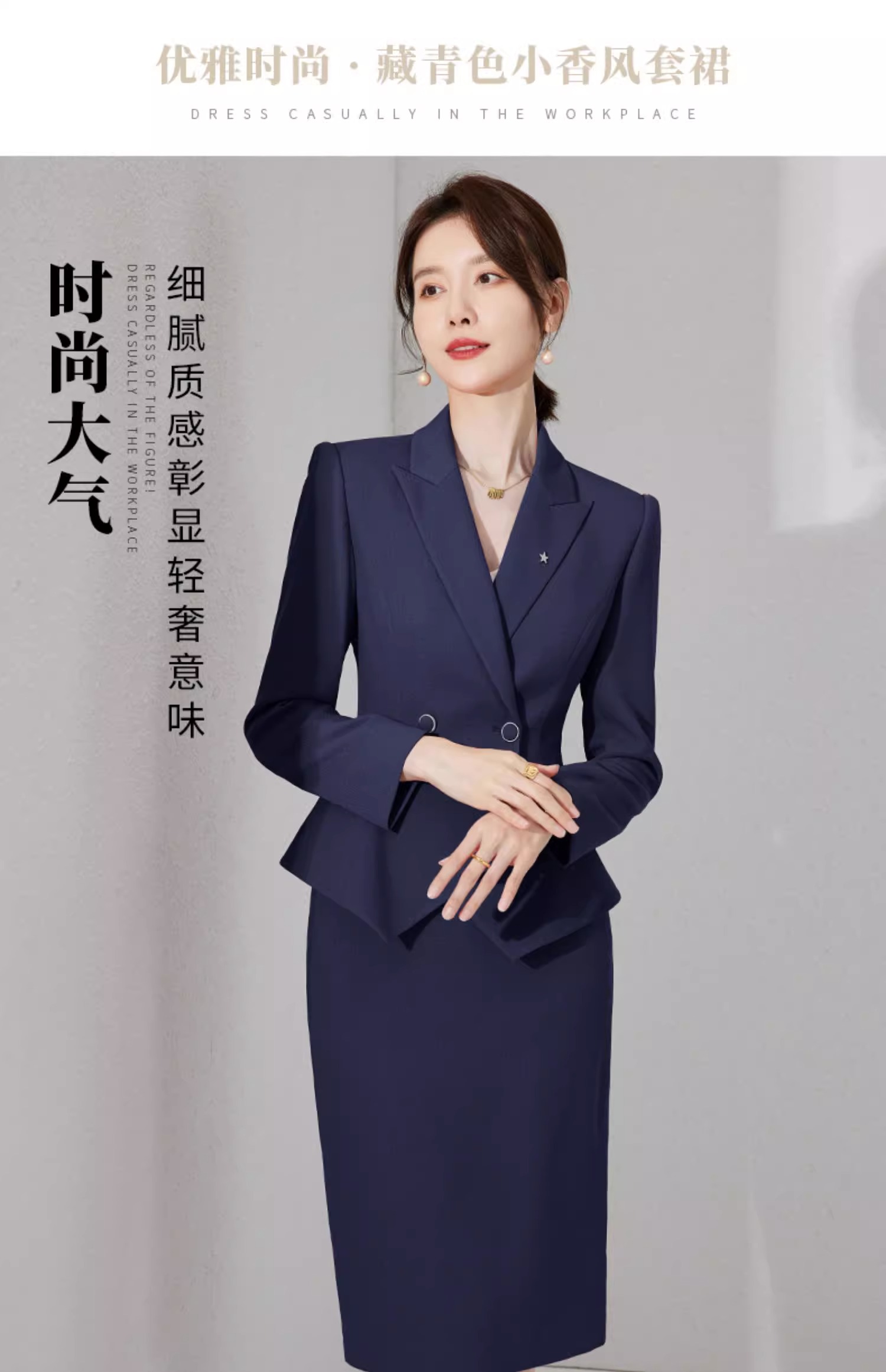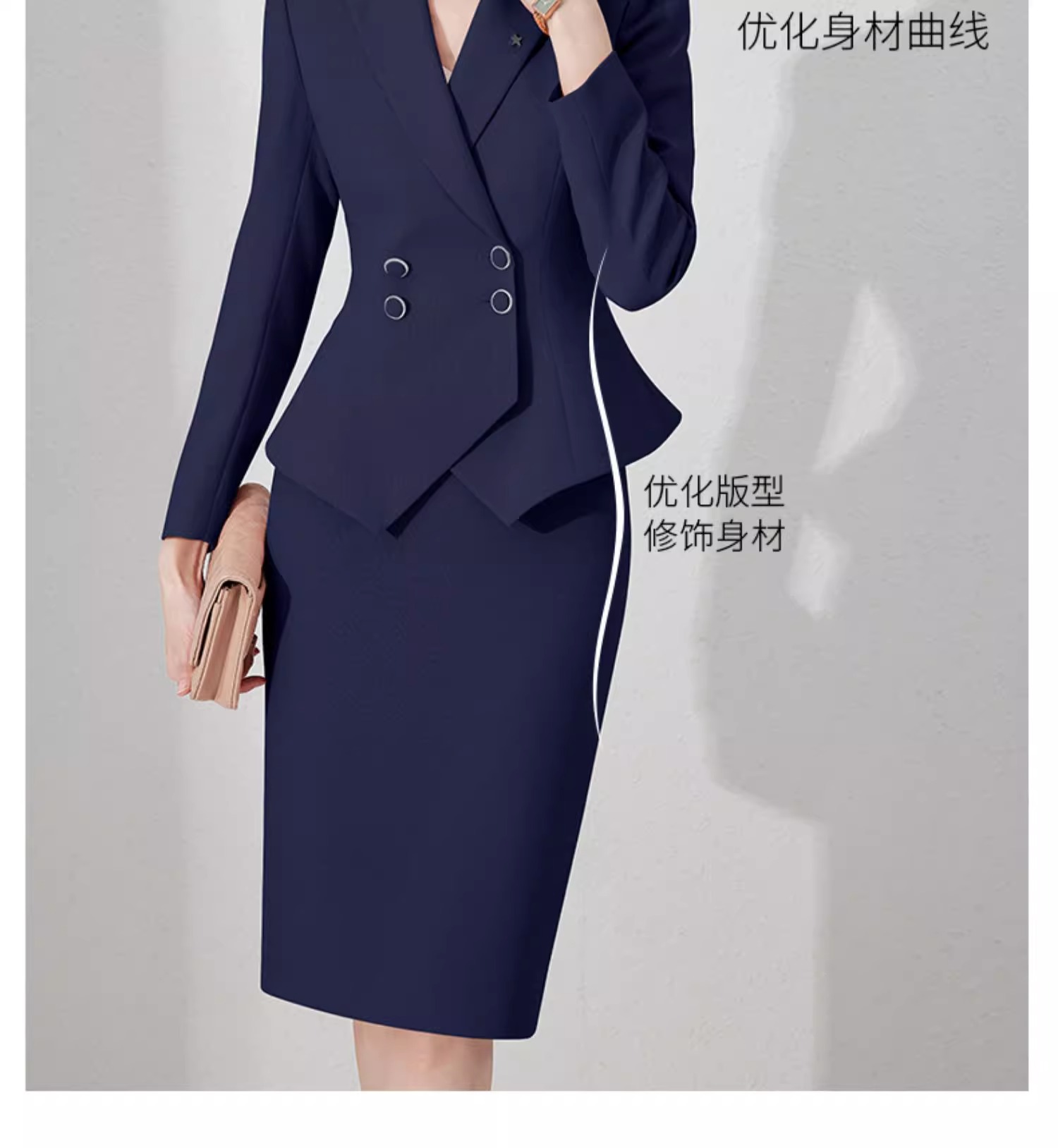 艾尚臣藏青色西装套裙女工装美容院酒店前台接待职业装OL工作服