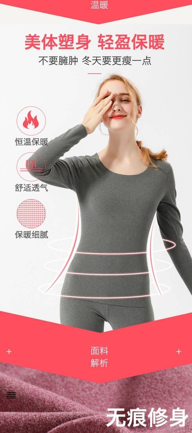 无痕薄款发热保暖内衣女套装加绒加厚秋衣秋裤学生紧身圆领打底衫