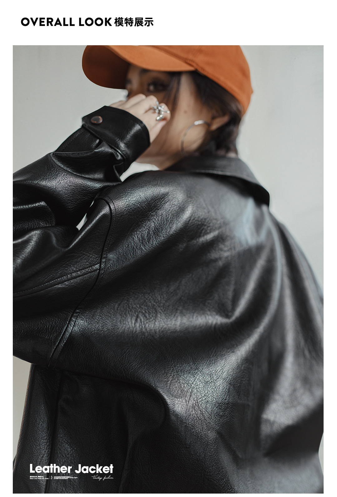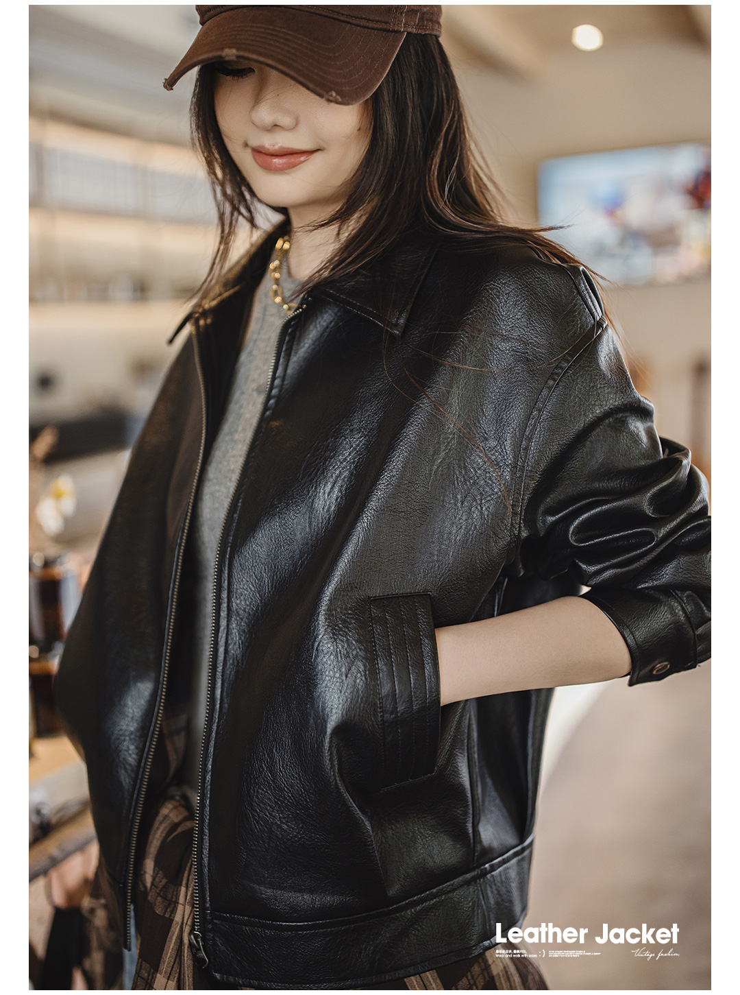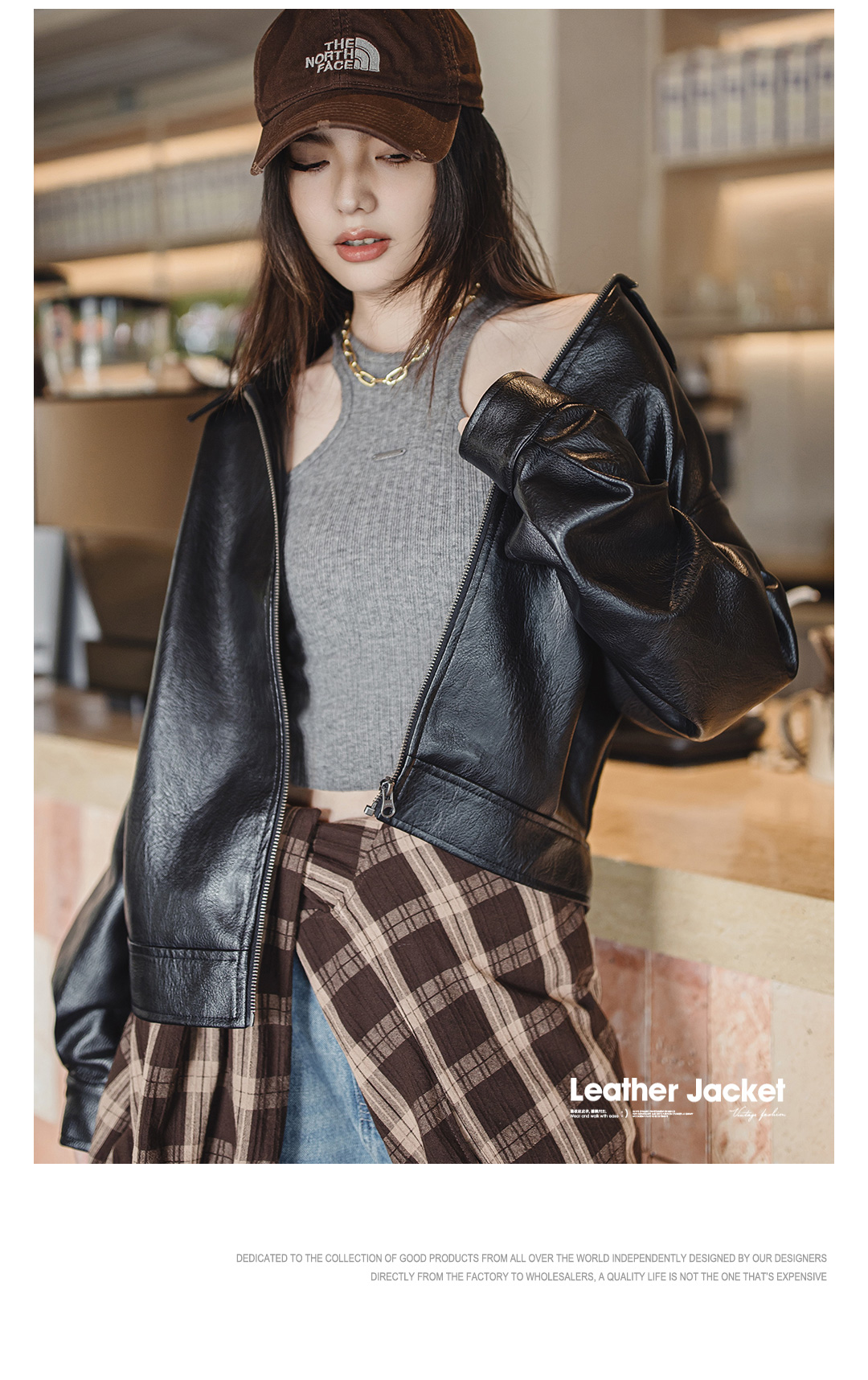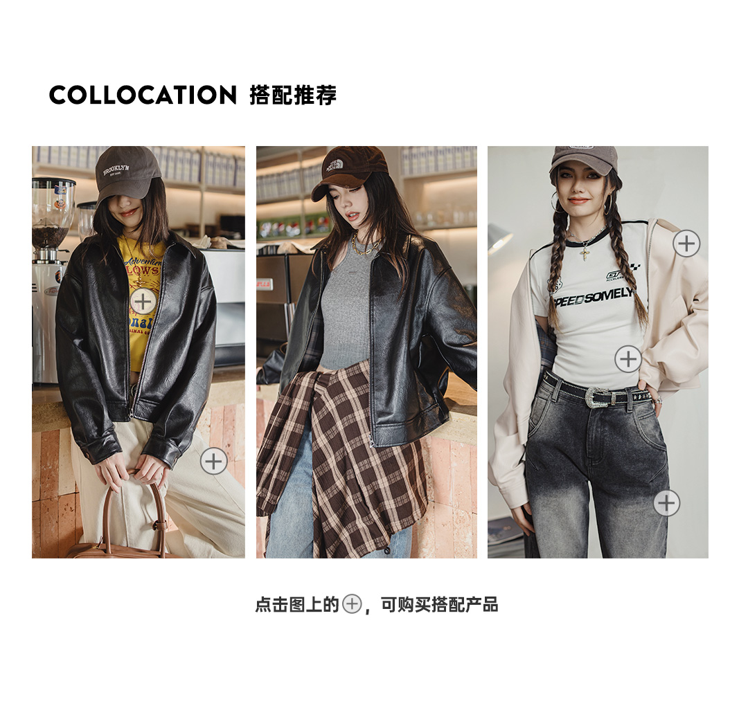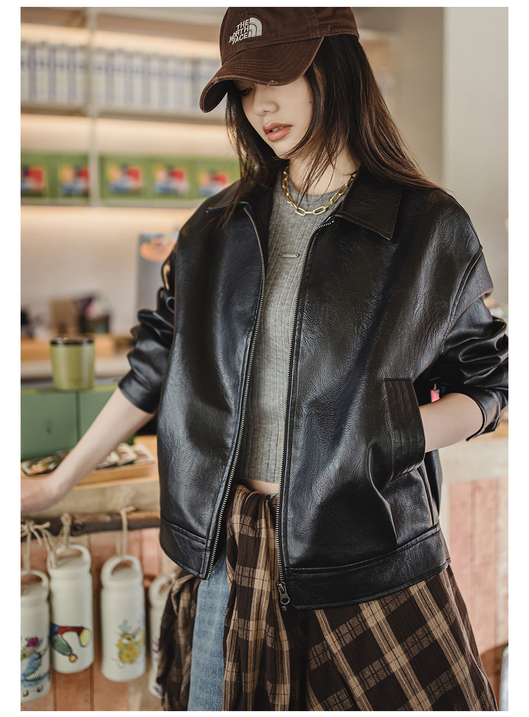 马登美式复古米白色皮衣外套宽松机车短款夹克通勤外套上衣春秋女