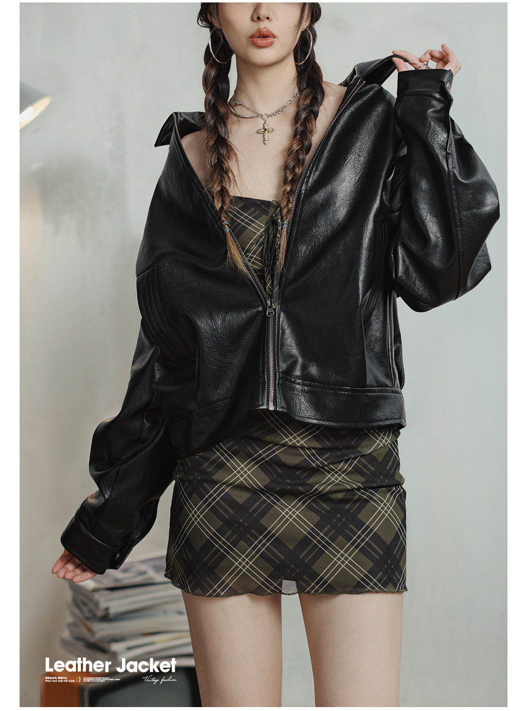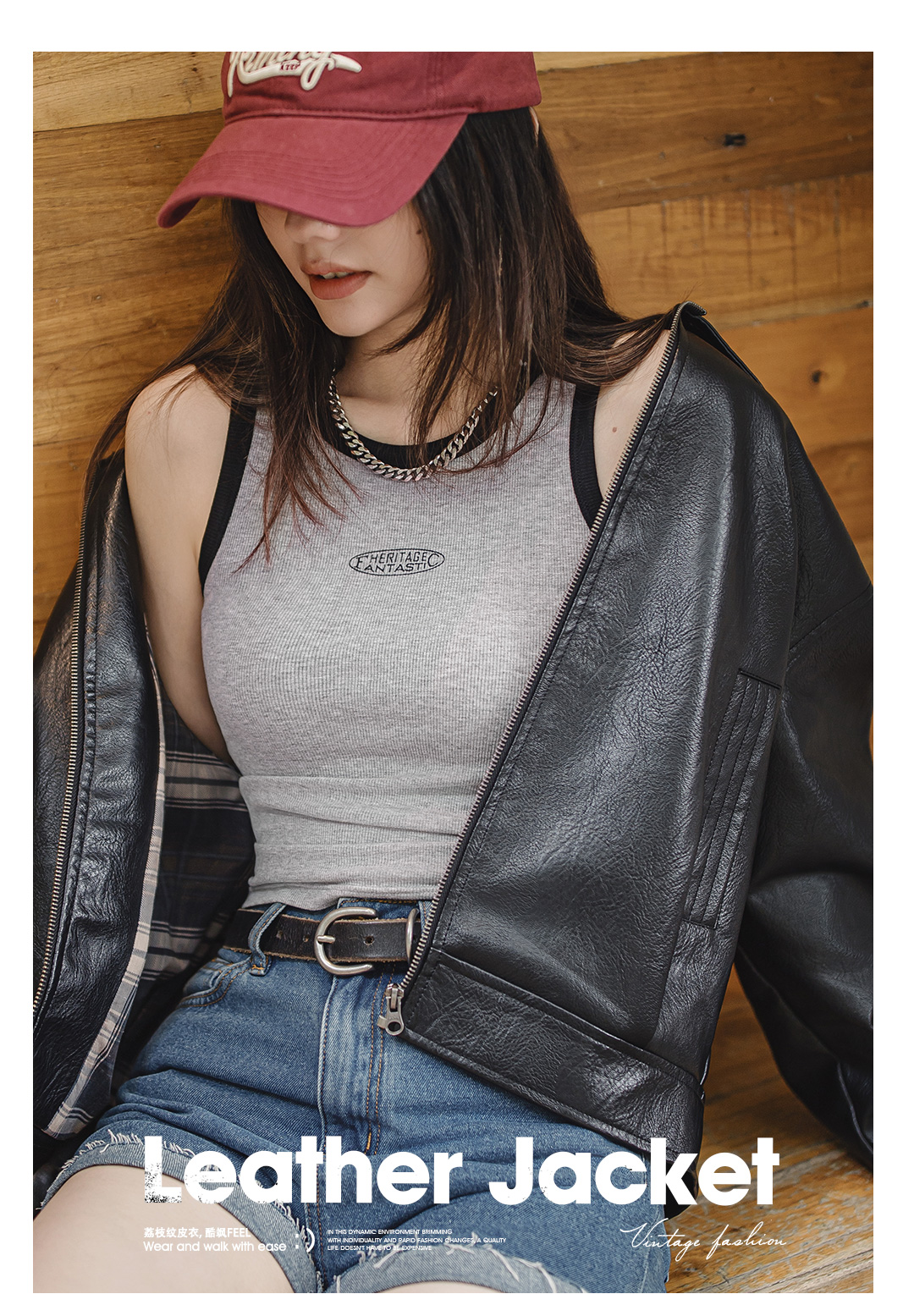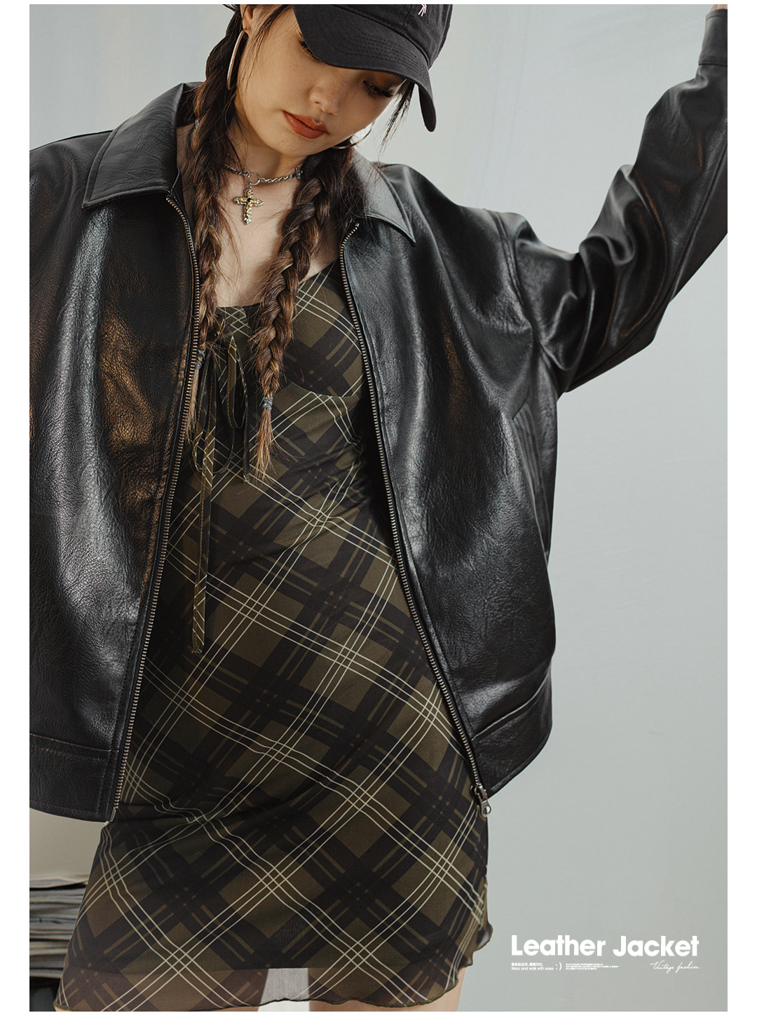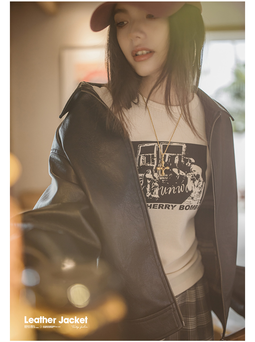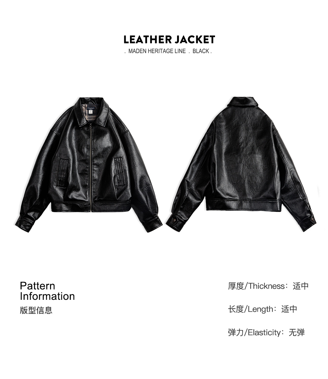 马登美式复古米白色皮衣外套宽松机车短款夹克通勤外套上衣春秋女