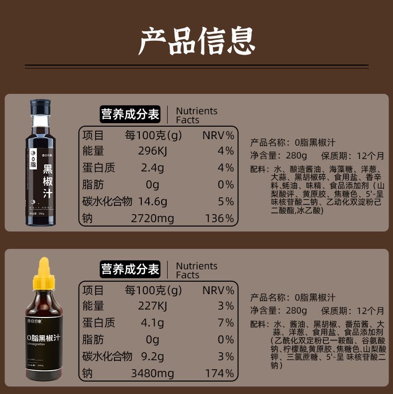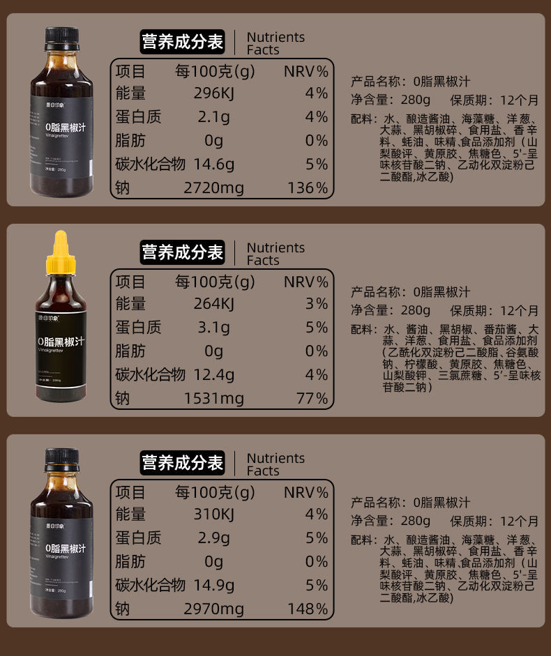 0脂肪牛排黑胡椒酱汁低轻0添加蔗糖意大利面卡泡拌面酱料沙拉酱