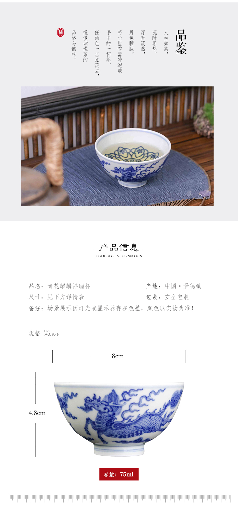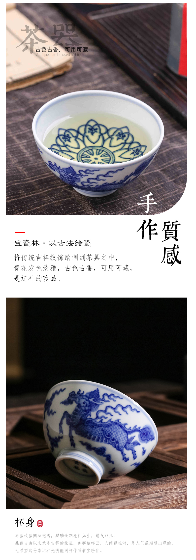 青花麒麟祥瑞杯