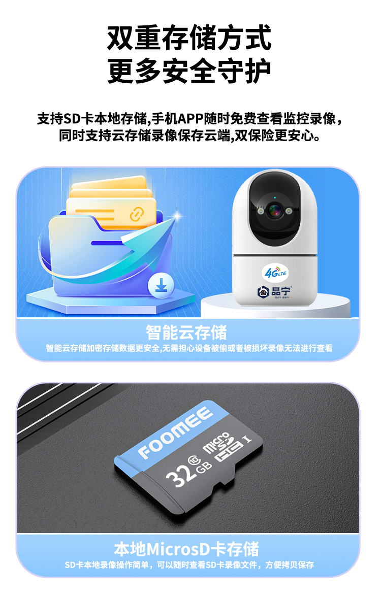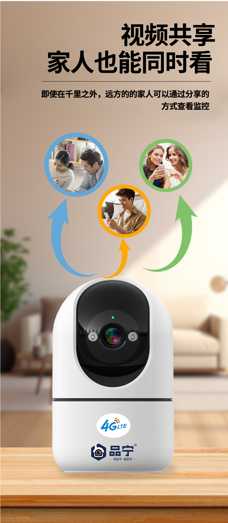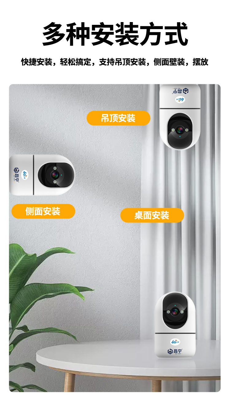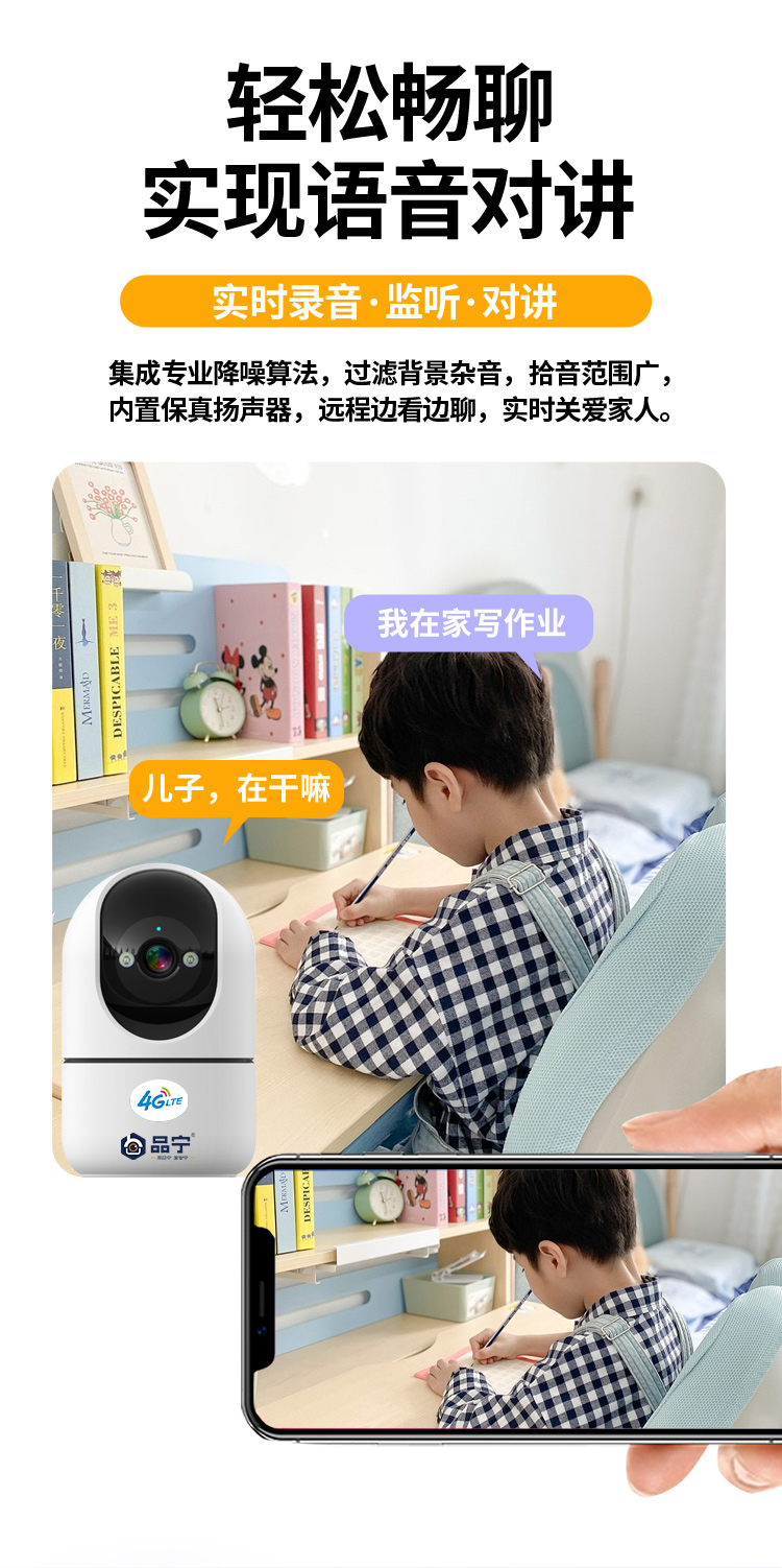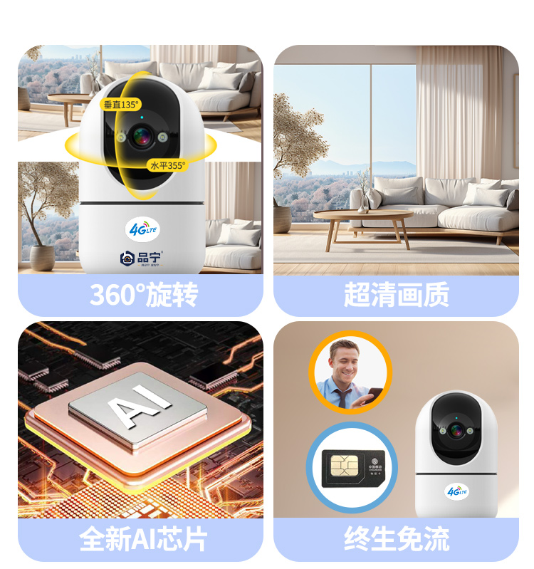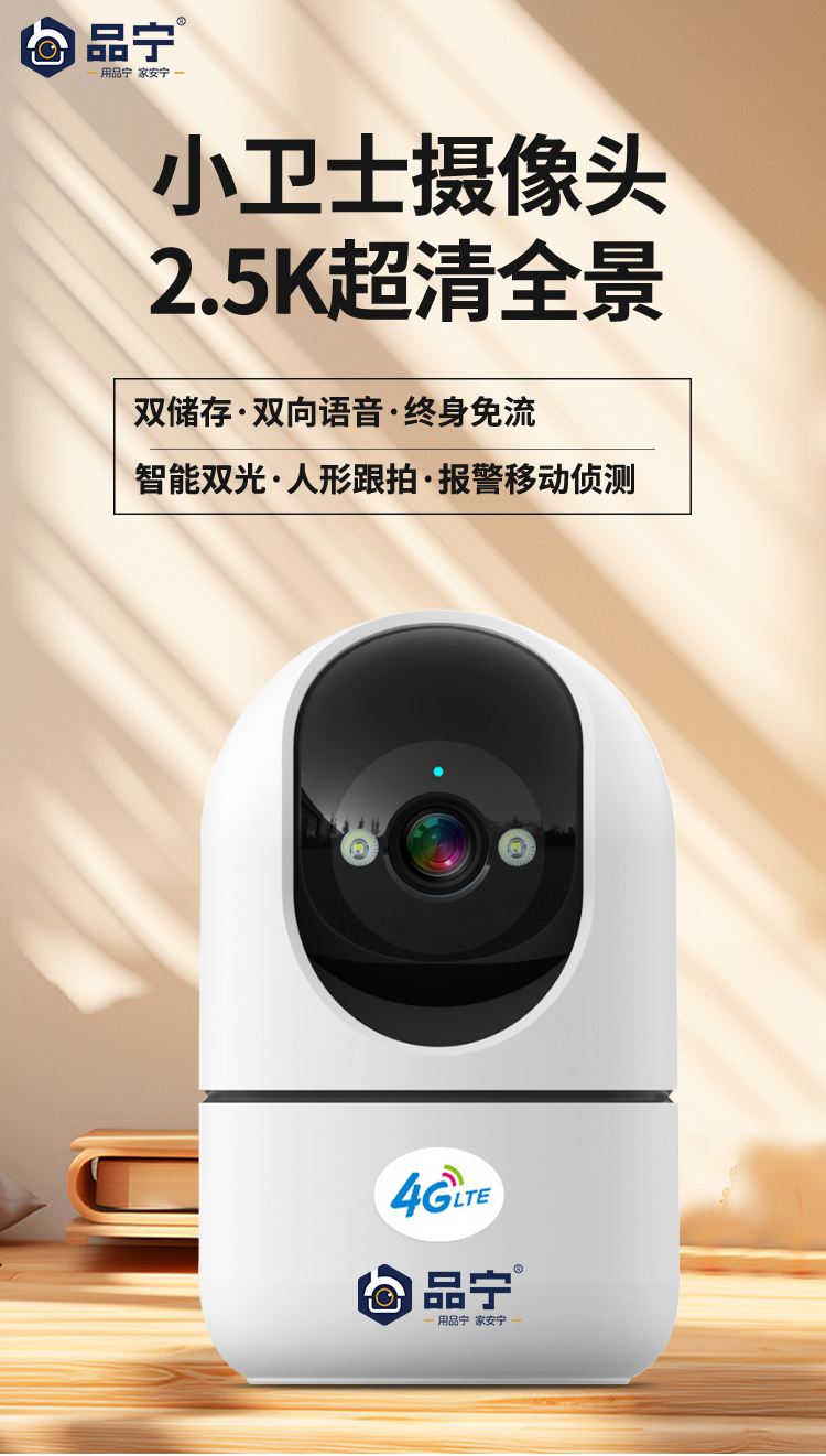 品宁小卫士4G室内监控无需充值远程看家