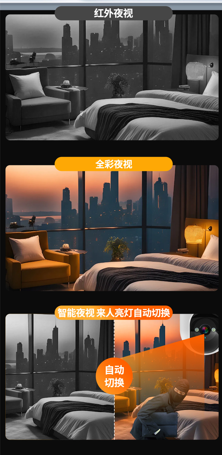 蜂眼20号双镜头双画面免充值流量人形侦测报警355度旋转